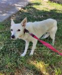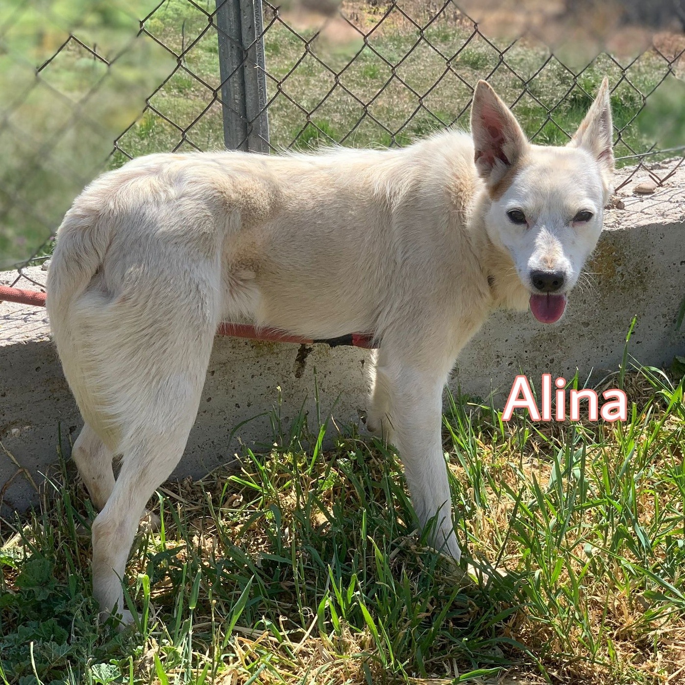Es una perrita de tamaño pequeño (unos 8 kilos) que se muestra algo tímida con personas y sociable con perros. Nacida aproximadamente en abril de 2016.