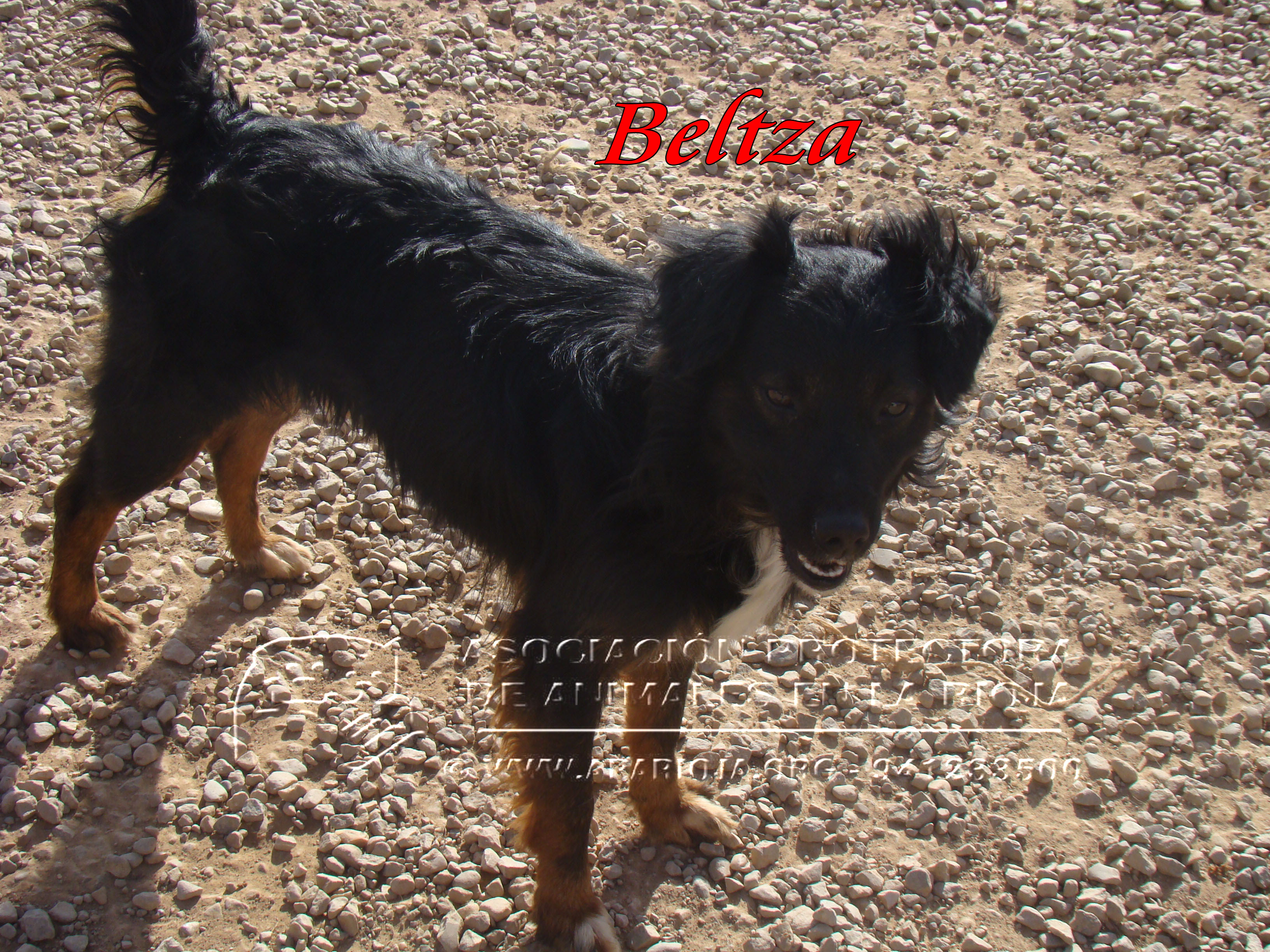 Es un perro mestizo muy bueno y cariñoso. Muy activo y juguetón. Nacido entre 2012 y 2013. Tiene Leishmania controlada. Se lleva bien con otros perros.