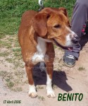 Benito es todo cariño. Un perro super bueno. En cuanto siente tu mano se derrite, se le cierran los ojillos y disfruta con cada gesto de amor que recibe.