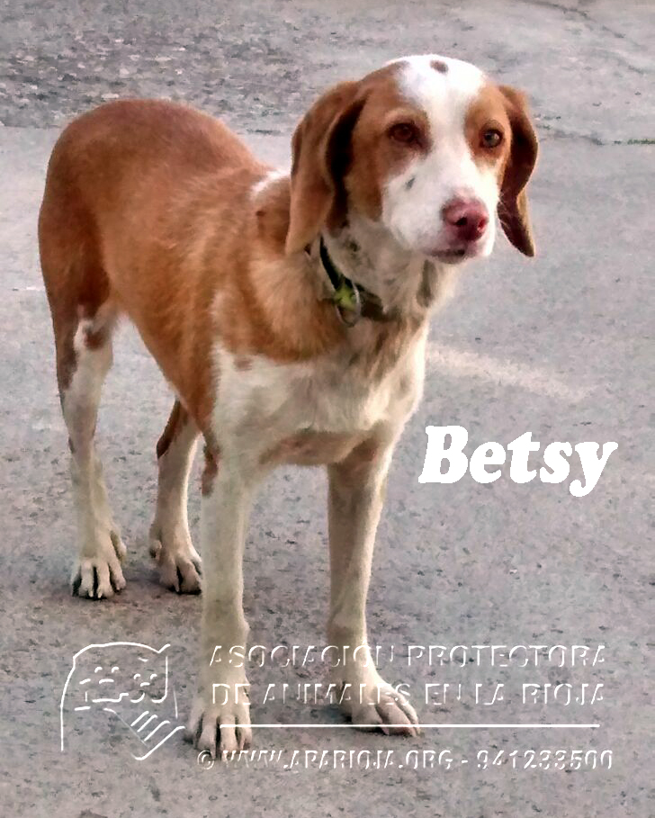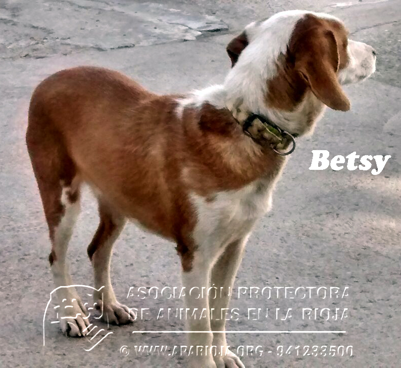 Betsy apareció abandonada el 14/04/2017 por la carretera de Villamediana. Llevaba puesto un collar viejo, pero no tenía chip.