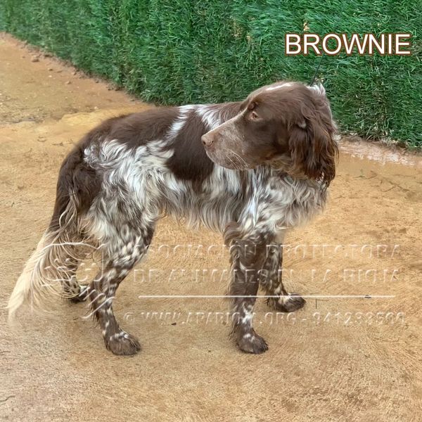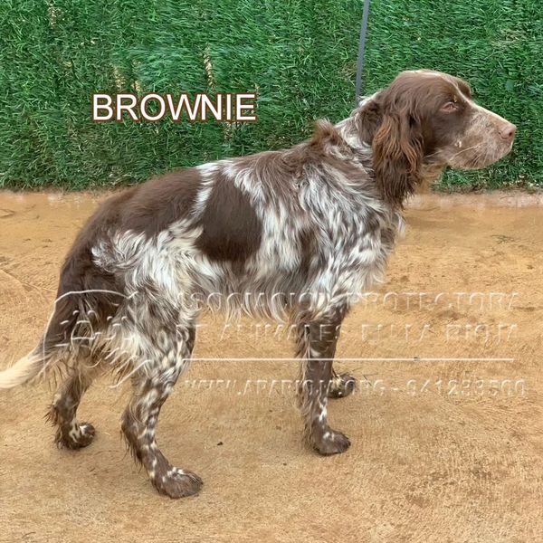 Brownie es un Setter muy bonachón. Es muy sociable con perros y pesonas y va muy tranquilo de paseo.