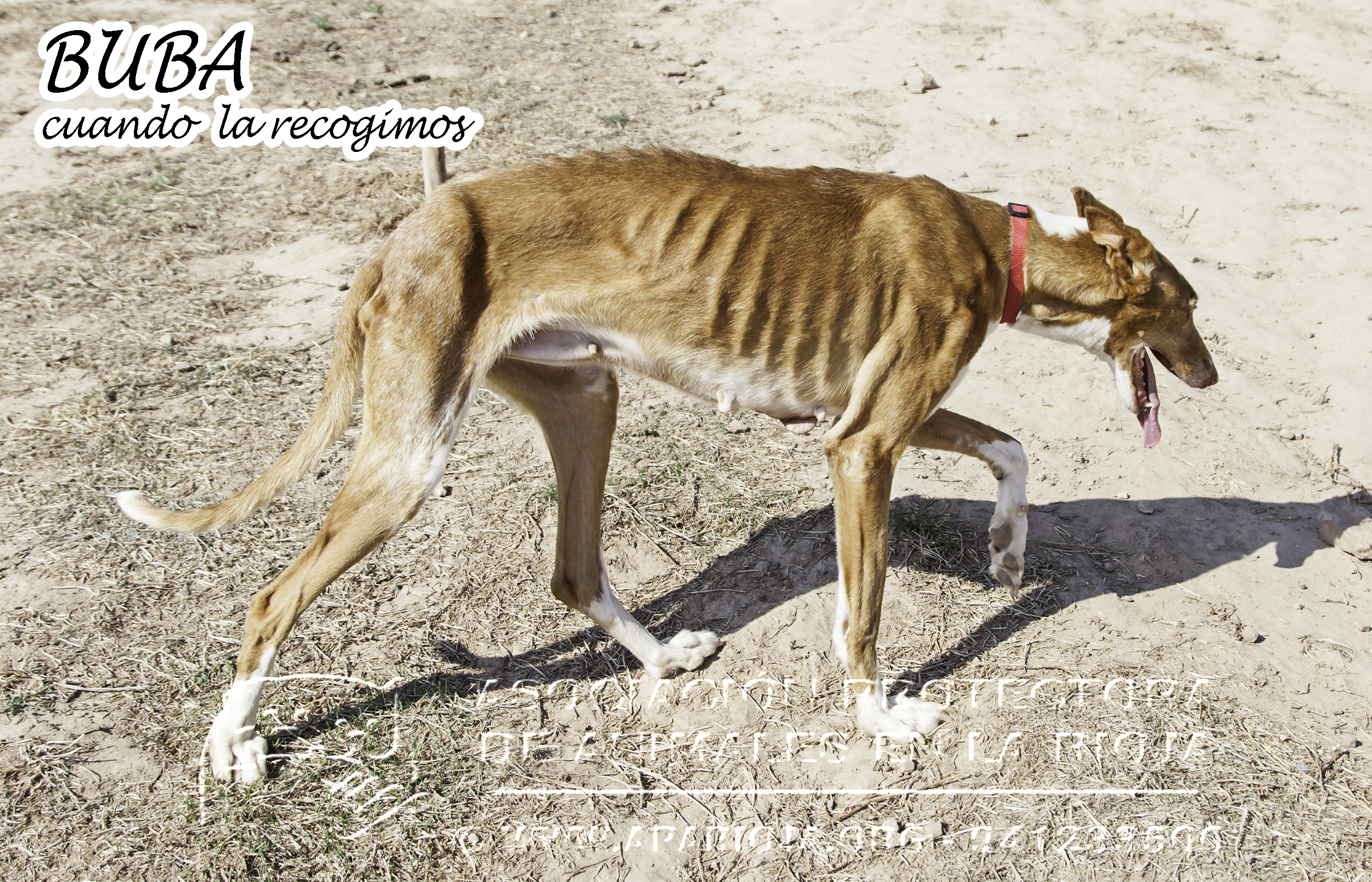 BUBA es una de esos 6 primeros perros enviados a la perrera y que por fin se encuentra en nuestro refugio. Se va recuperando poco a poco y es una perrita muy alegre, cariñosa y agradecida.
