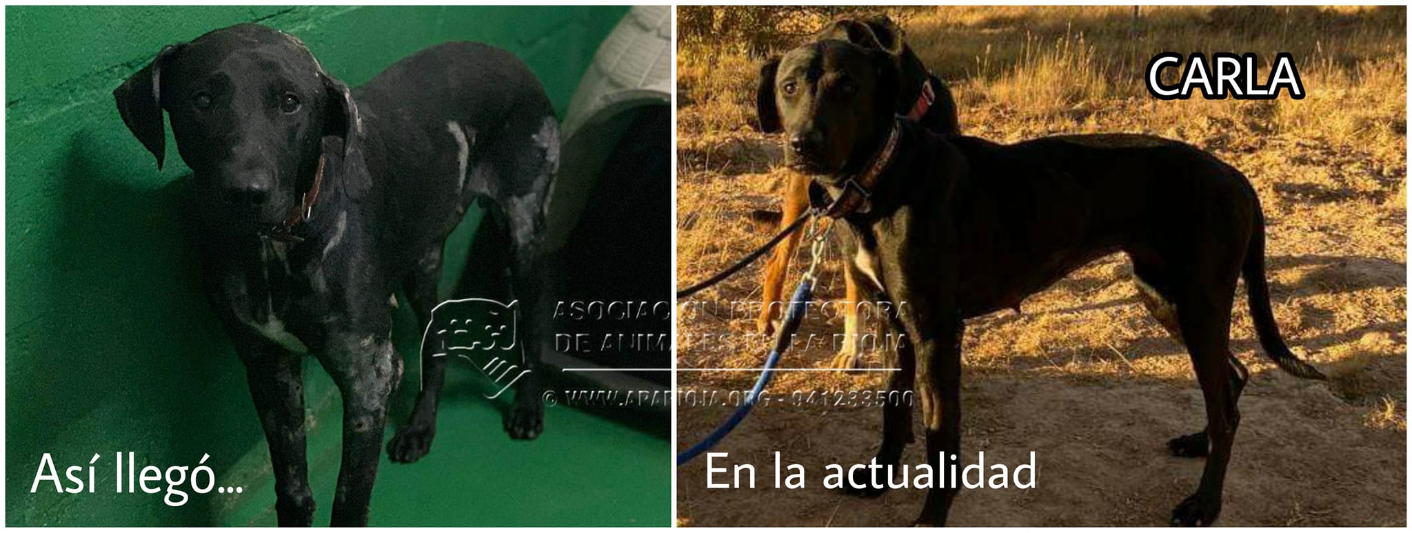 Poco a poco se fue recuperando y le fue saliendo el pelo hasta ser una preciosa perra como veis en la fotos.