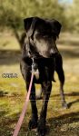 Tenía mucho miedo, pero ha mejorado bastante y aunque se muestra tímida al principio, después, cuando te conoce, es una perra cariñosa y juguetona. Con perros en muy sociable.