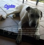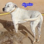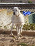 Nació en enero de 2015. Pesa unos 24 kilos, creemos que de adulto será mediano tirando a grande. Su madre es mestiza de American Standford y su padre podenco.