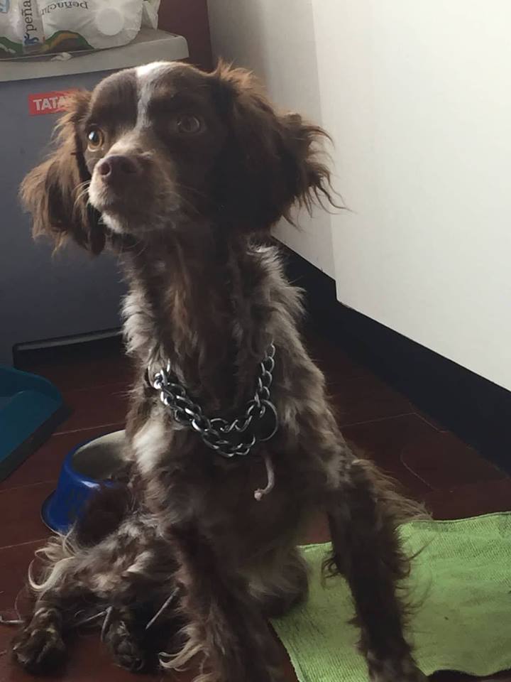 Esta es Cris, una perrita de tamaño pequeño (7 kgs.), nacida aproximadamente en julio de 2016.