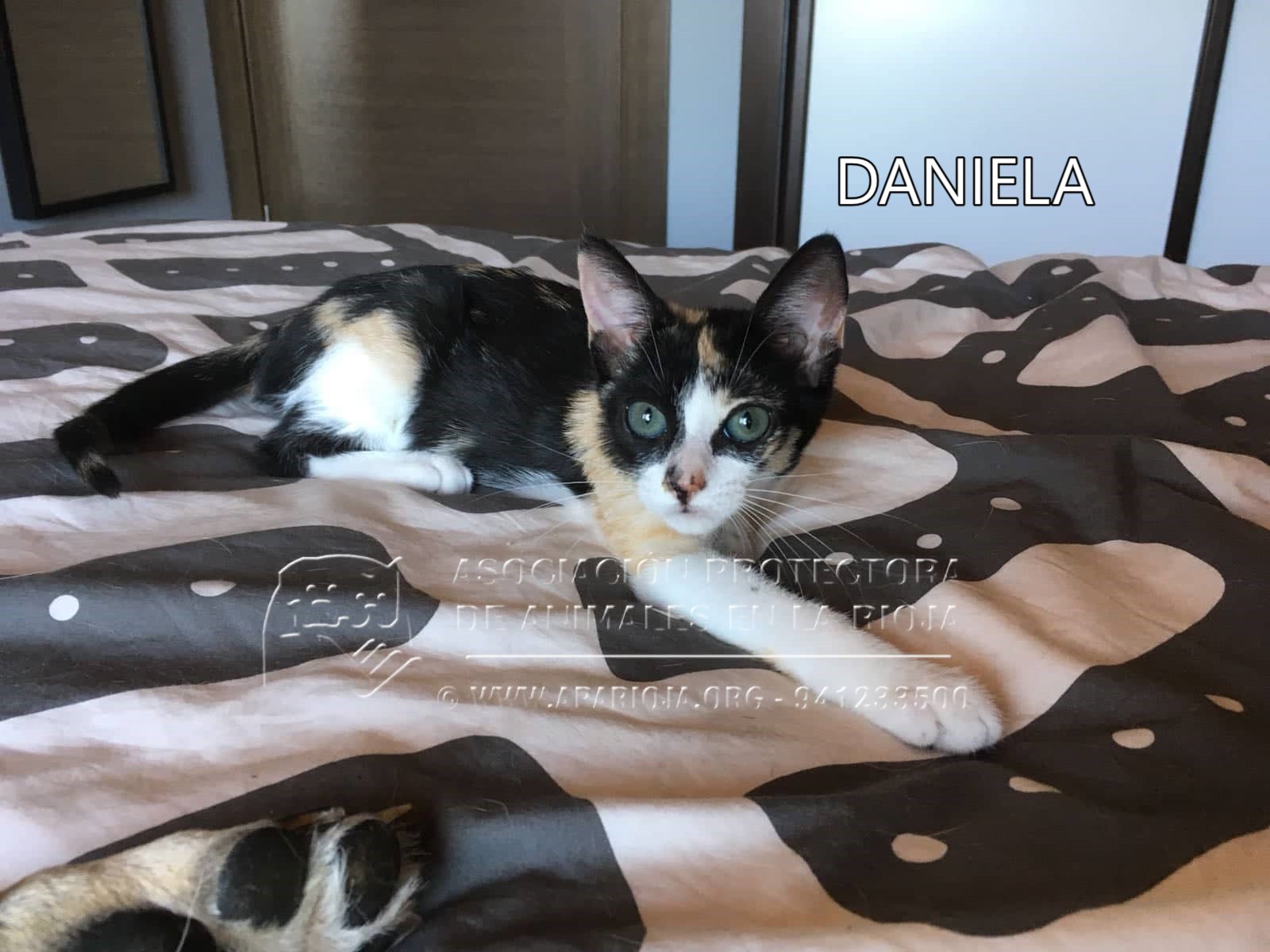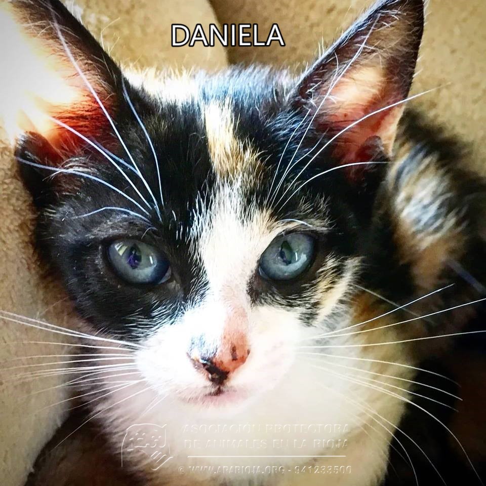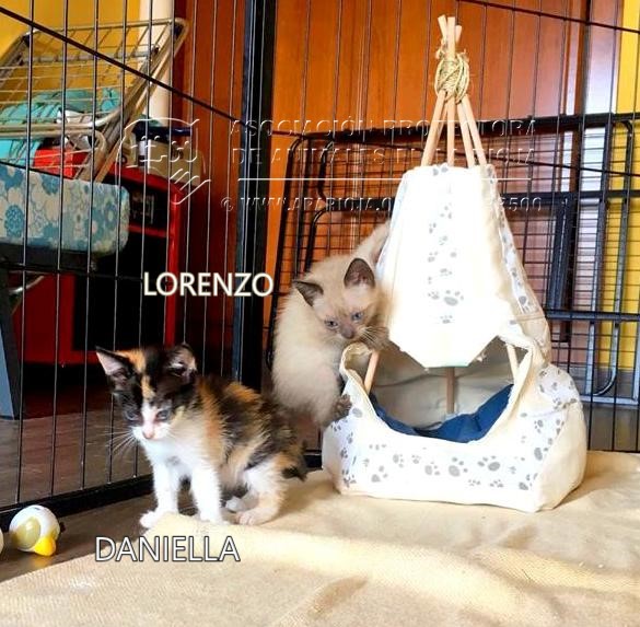 Estos pequeños fueron recogidos del Parque del Ebro. Tenían una grave infección en los ojos de los que ya están curados. Gracias a una casa de acogida se han recuperado, pero ahora hay que encontrarles un hogar definitivo. Lorenzo ya ha sido adoptado, queda Daniella, la gatita tricolor, por encontrar hogar.