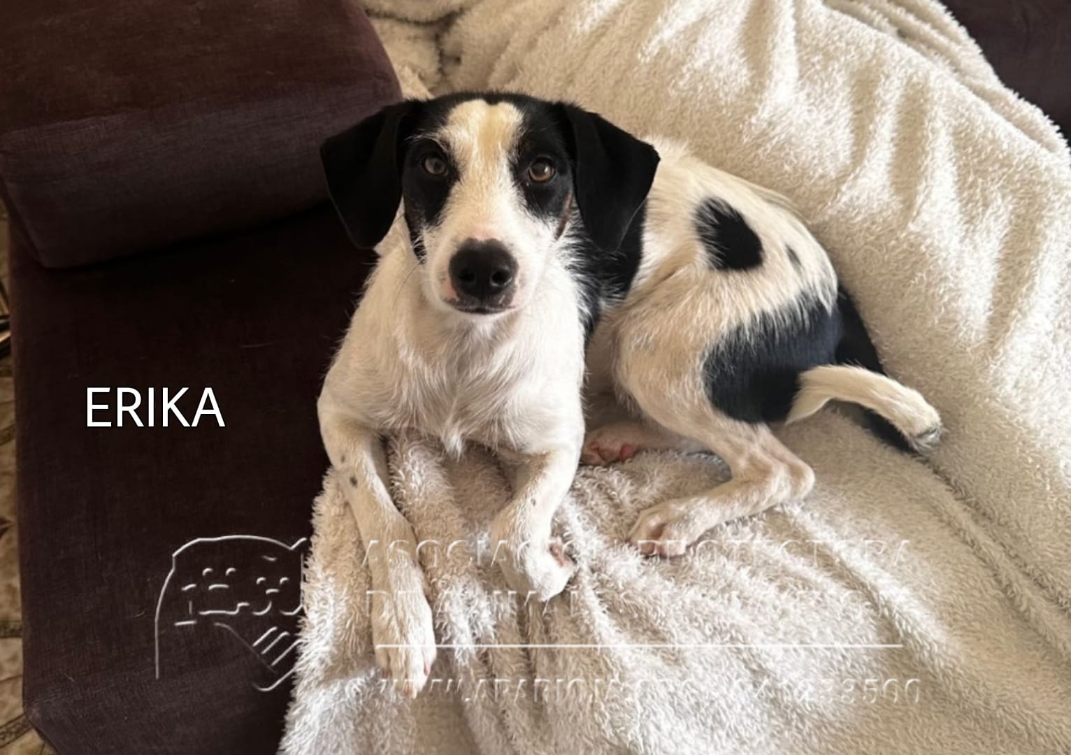Erika pertenece a una camada de cinco cachorras que fueron abandonadas en Calahorra. Todas sus hermanas ya han sido adoptadas y solo queda ella por encontrar un hogar.
