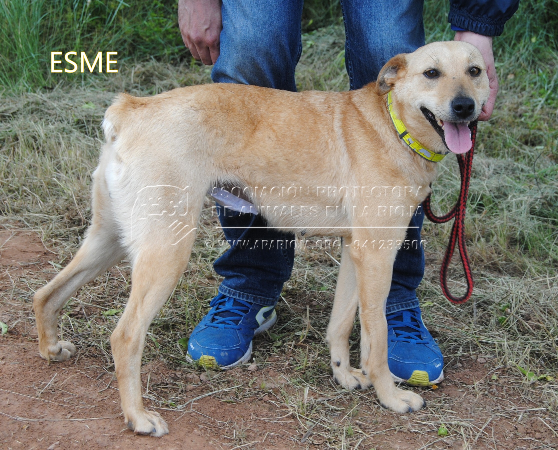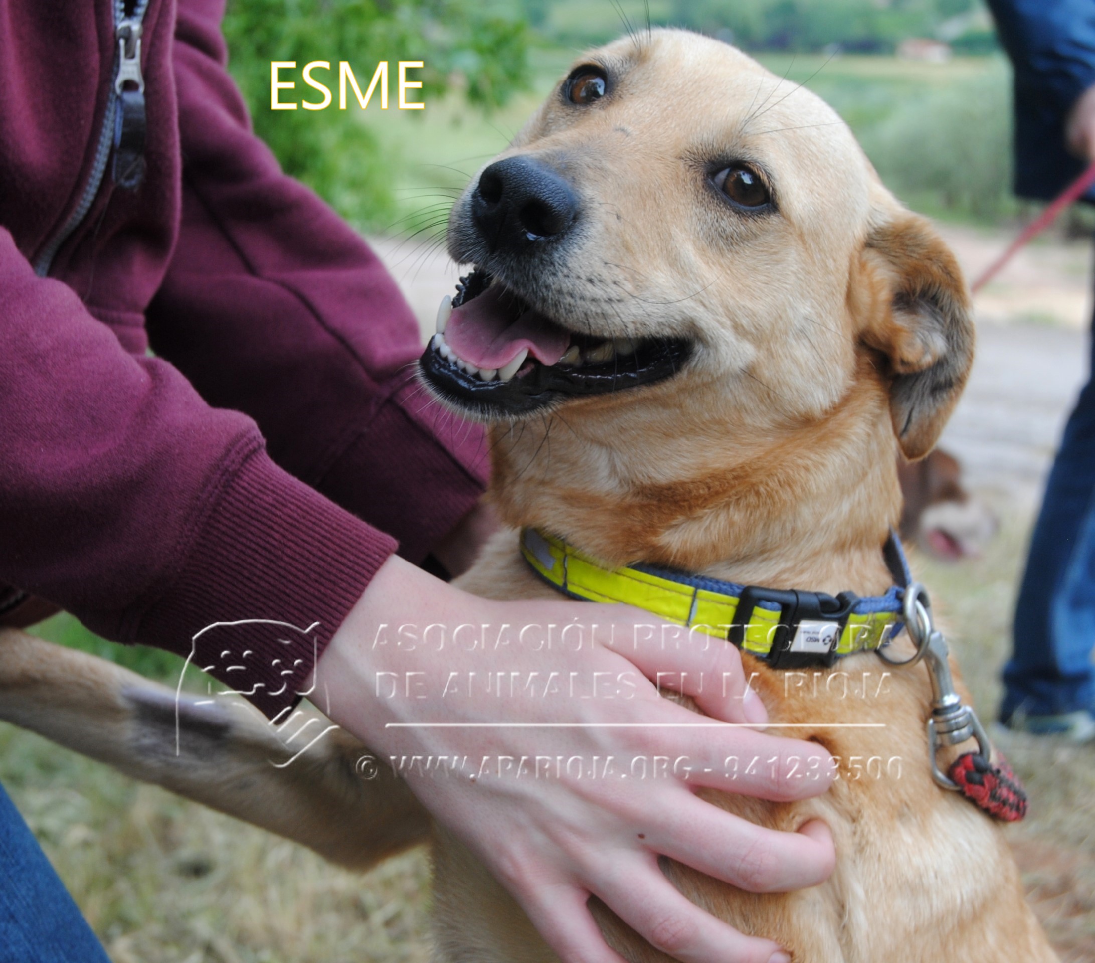 Esta pequeña se llama Esme. Es una perrita de tamaño entre pequeño y mediano, muy cariñosa y sociable que está deseando tener un hogar y una familia que la cuide para siempre. Nacida aproximadamente el 27/04/2015.