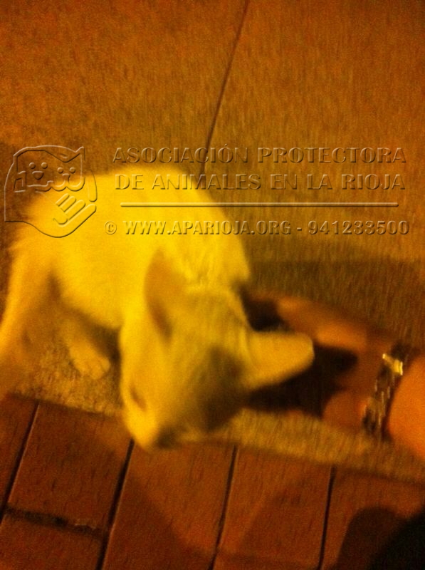 • Observaciones : Cachorro blanco abandonado en la calle. Lo llevaron a la perrera, y cuando una voluntaria iba a por unos perros que estaban reservados, se encontró a Esteban en la puerta. Así que se salvó por los pelos de entrar allí y acabar en la incineradora... Es súper sociable y cariñoso, convive con más gatos y con una perrita. APARIOJA 679064646