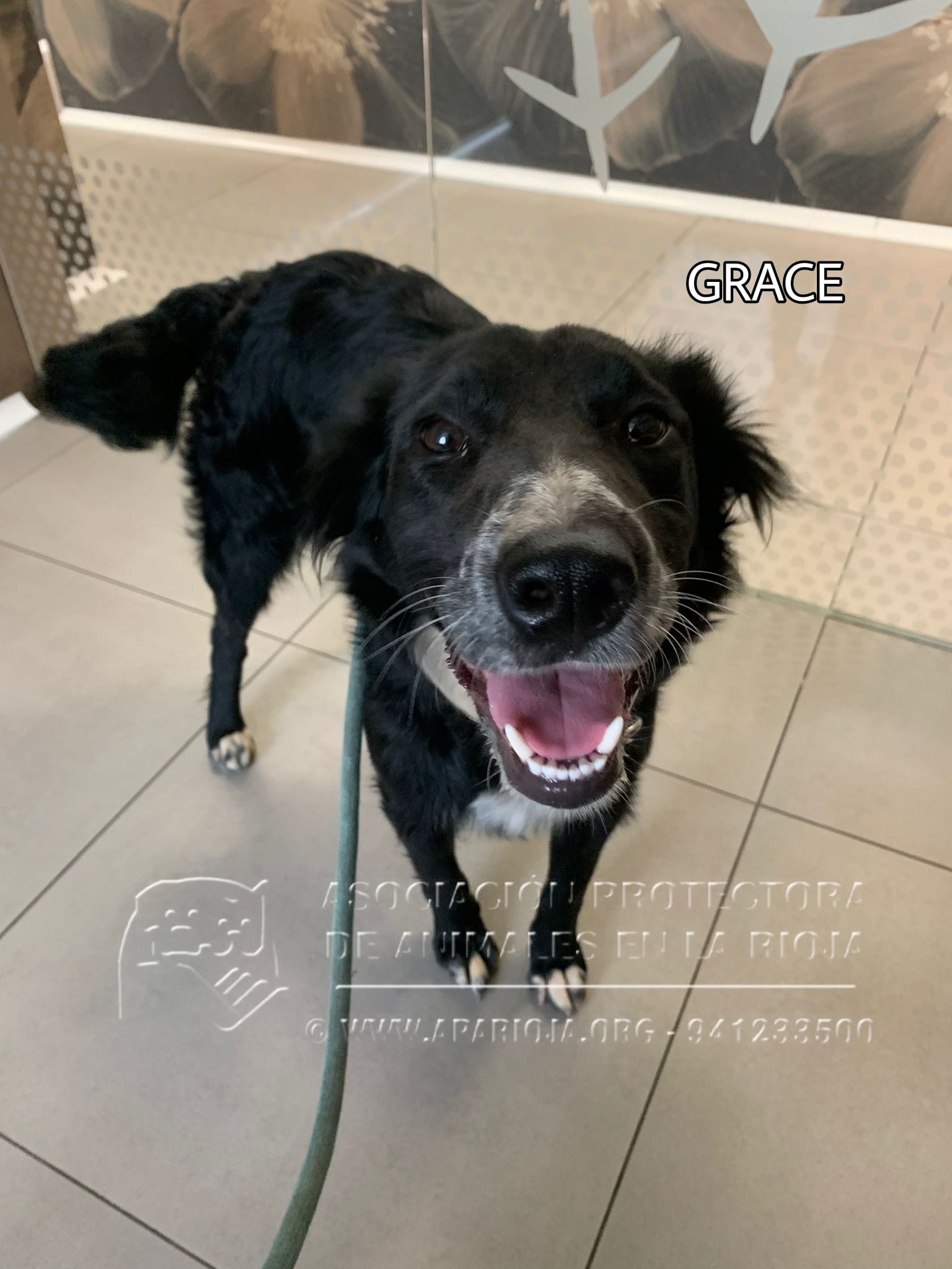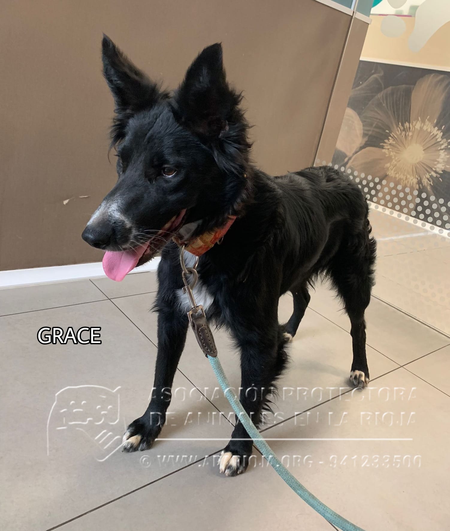 Grace es una mestiza de Border Collie, muy buena y sociable tanto con personas como con perros. Es cariñosa y activa.