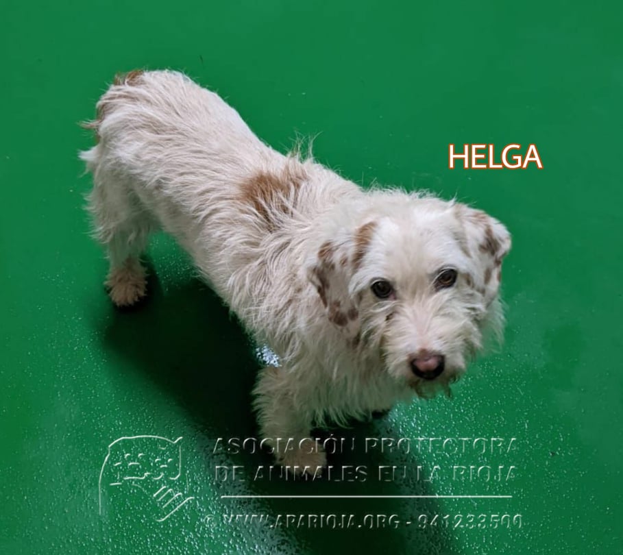 Helga es de tamaño pequeño, pesa unos 9 kilos aproximadamente.