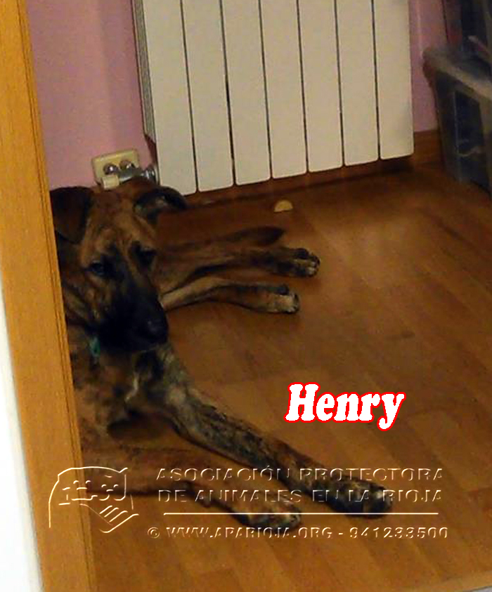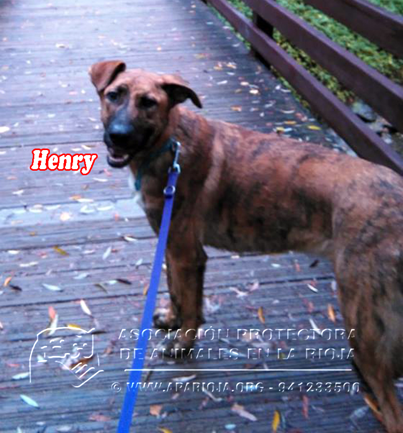 Henry nació aproximadamente diciembre de 2014 y es un perro juguetón y alegre que estuvo en la perrera casi dos meses, hasta que lo pudimos rescatar en enero de 2016 y llevar a una guardería.