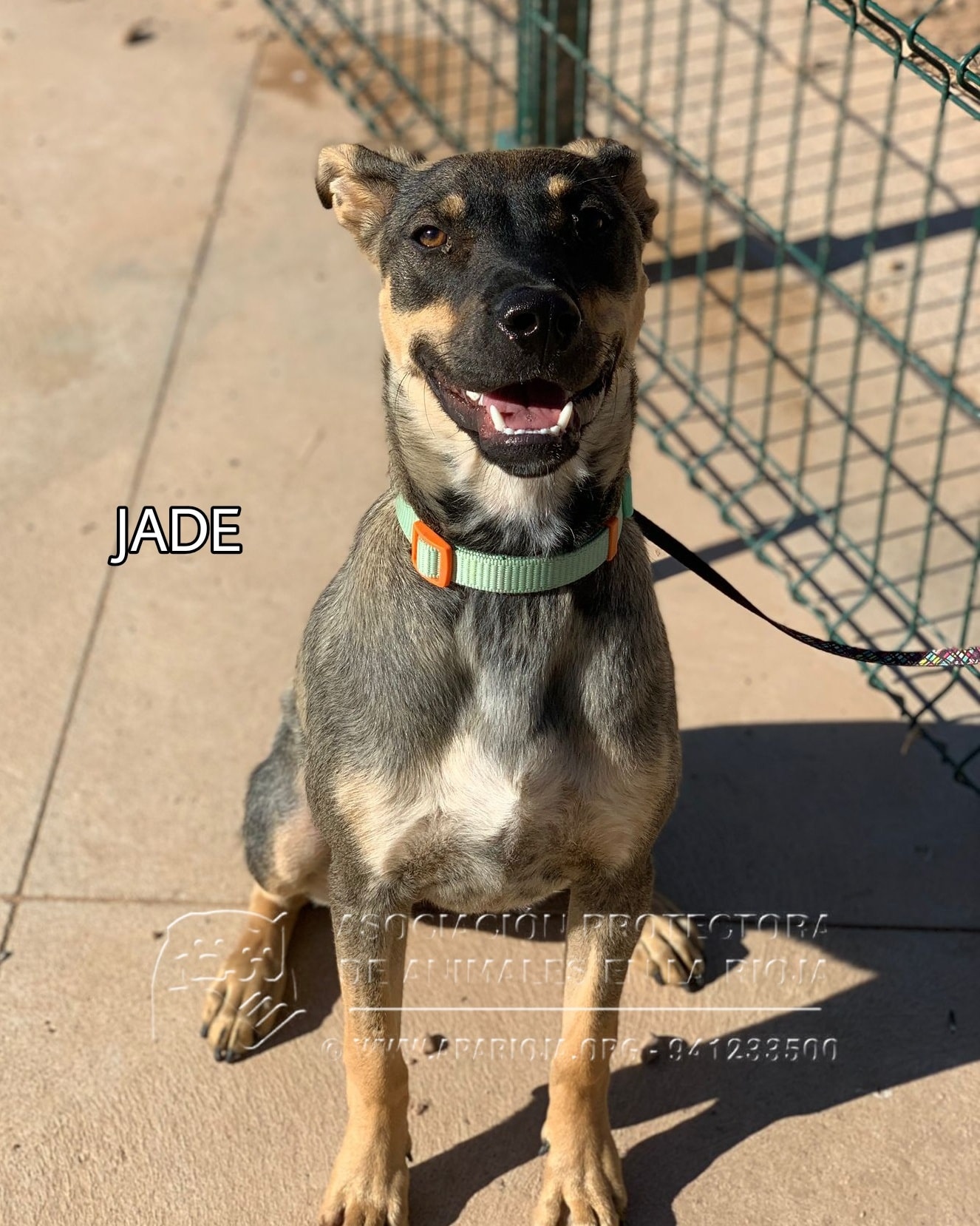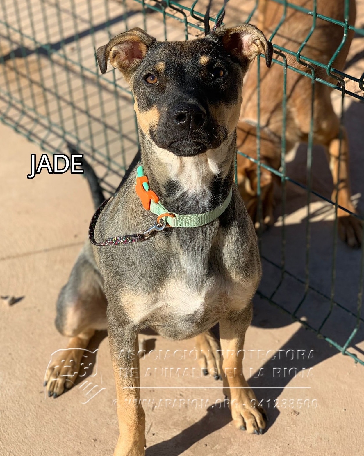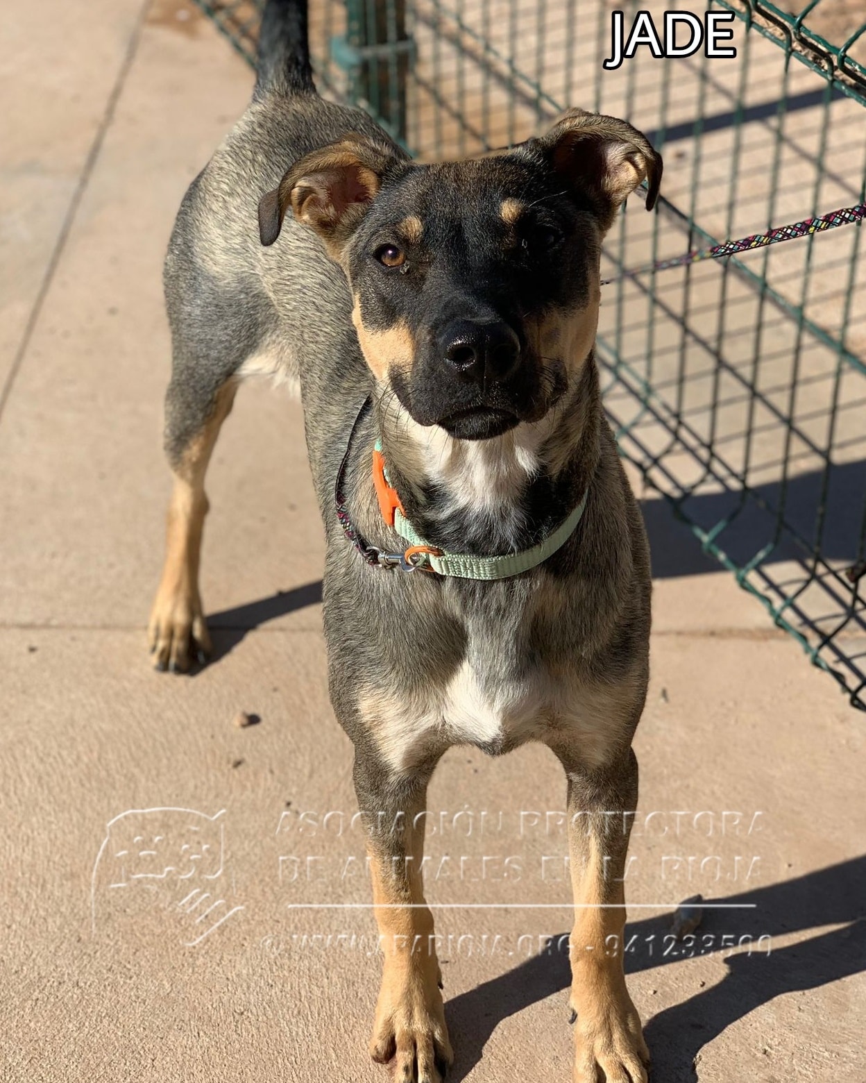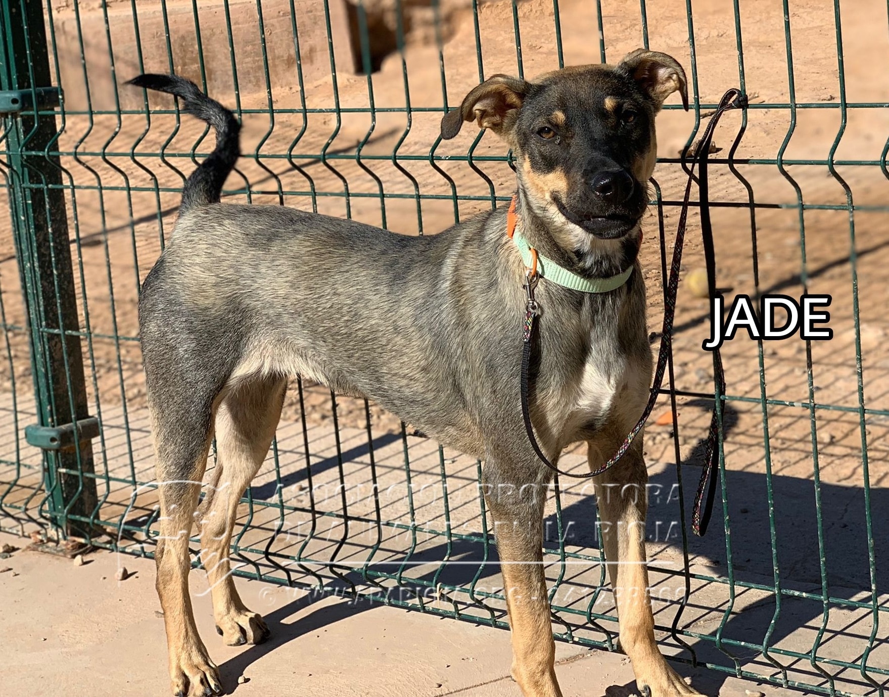 Jade es una mestiza, de tamaño mediano, cariñosa, sociable y juguetona.