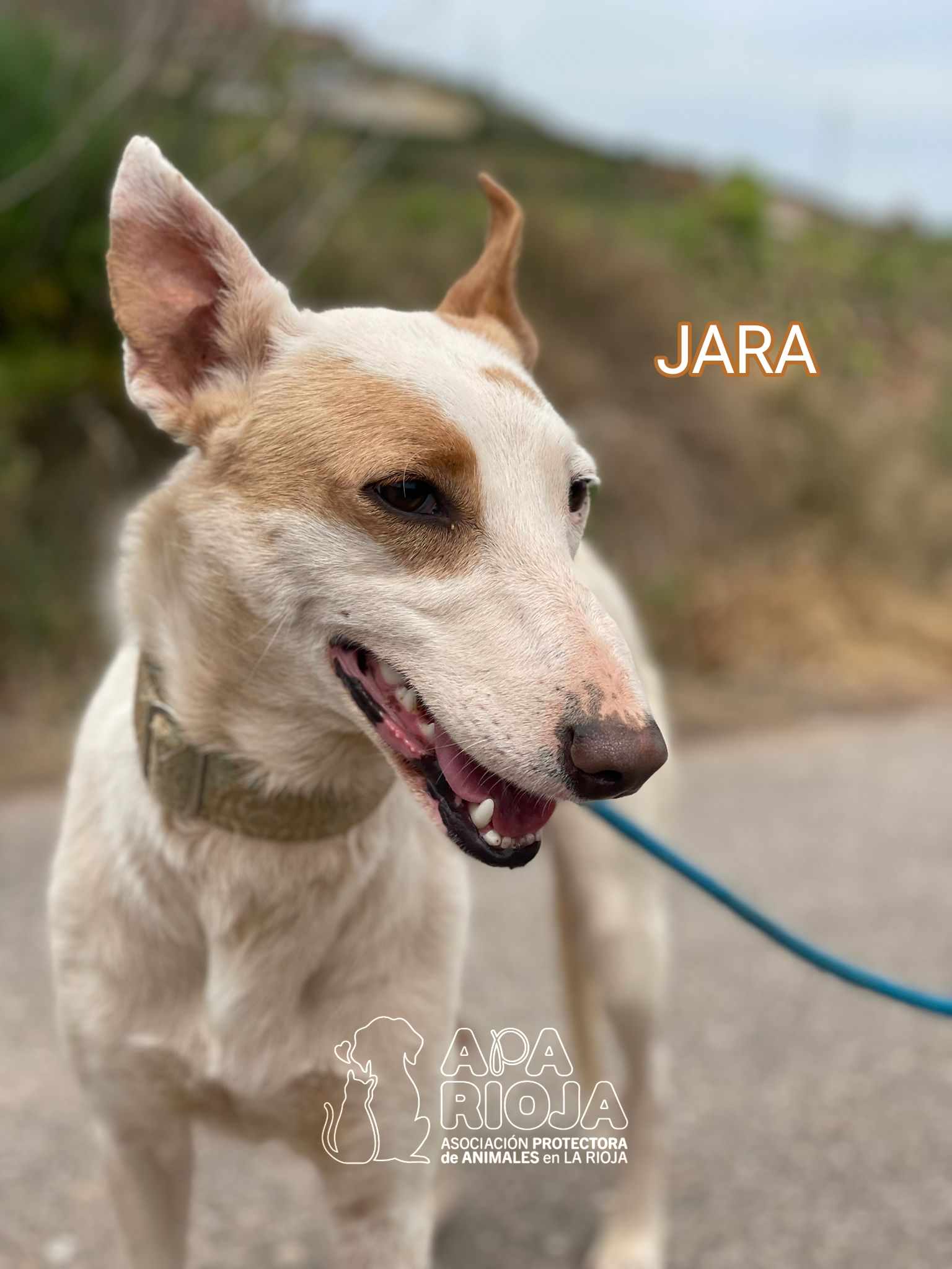 Jara llegó a nosotros junto a otra perrita (Sira), ya adoptada.