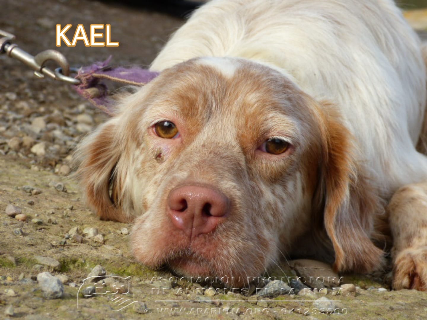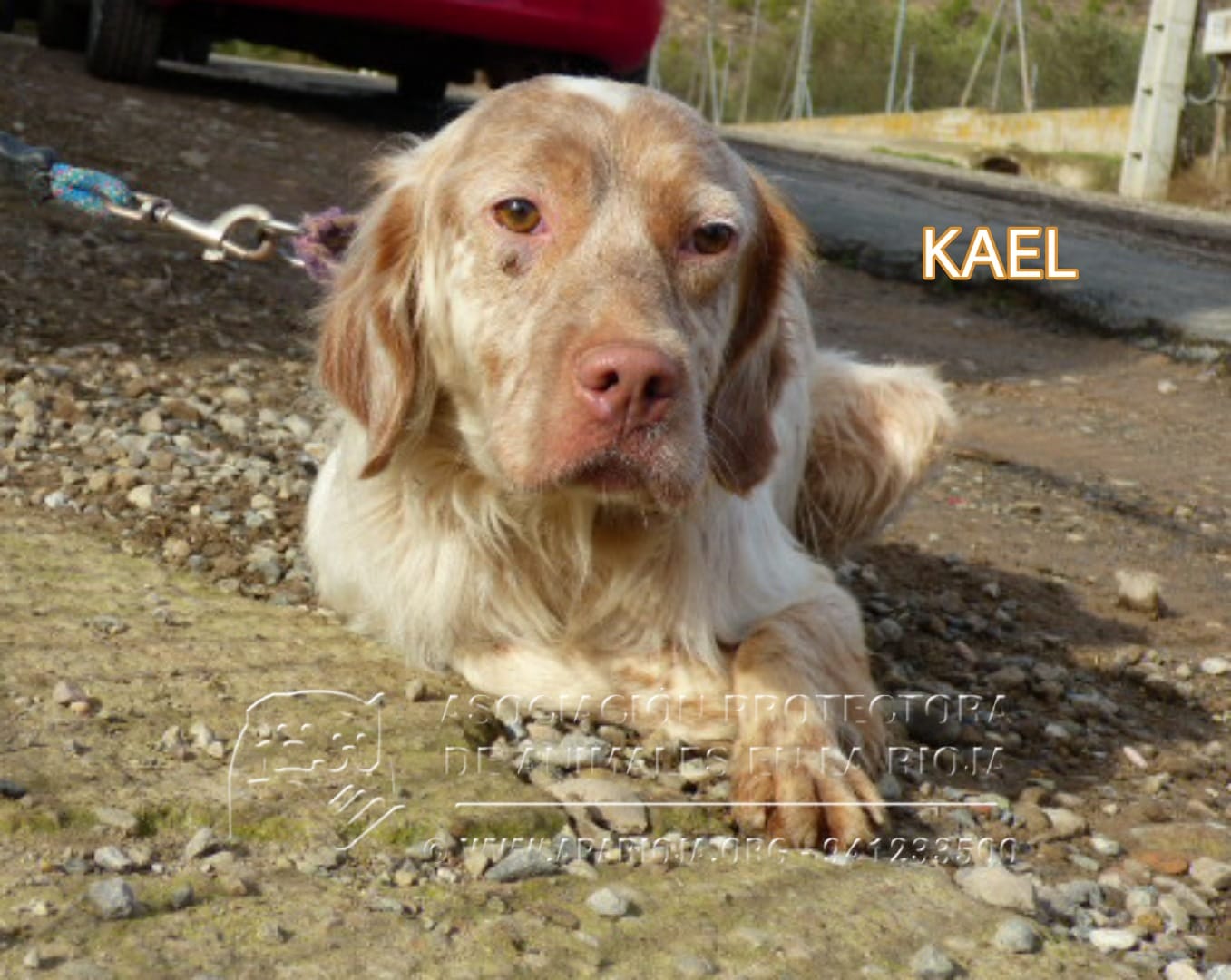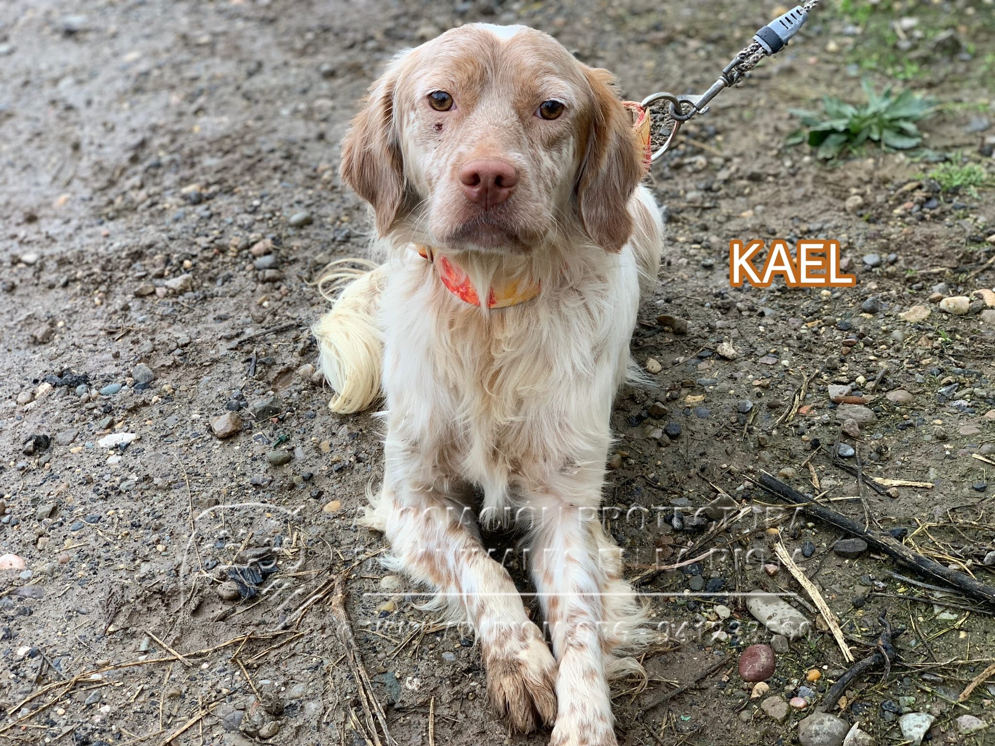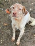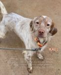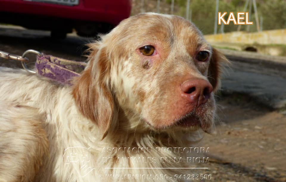 Kael es un mestizo de Setter y Spaniel Bretón muy sociable con perros y personas, cariñoso y activo.