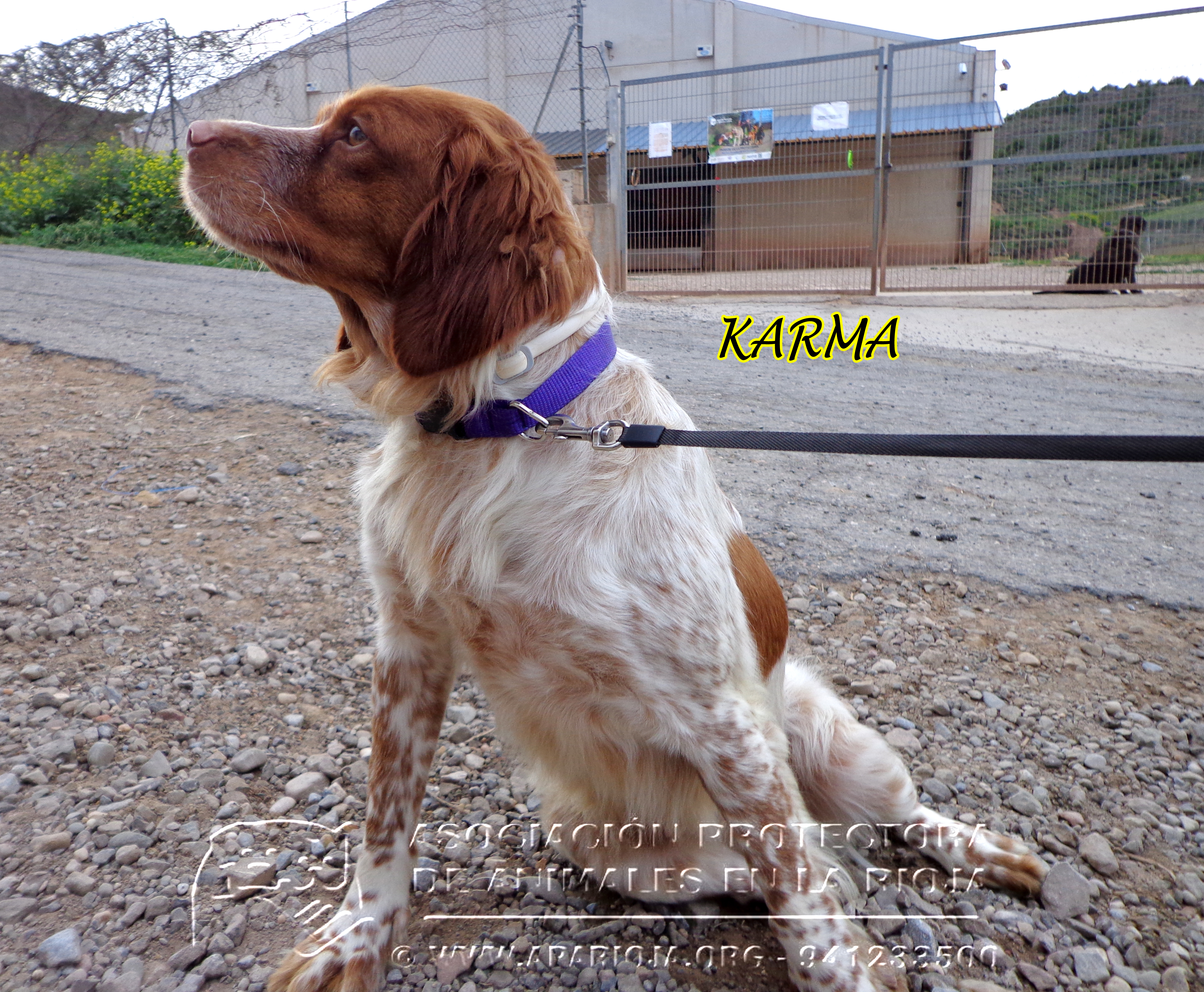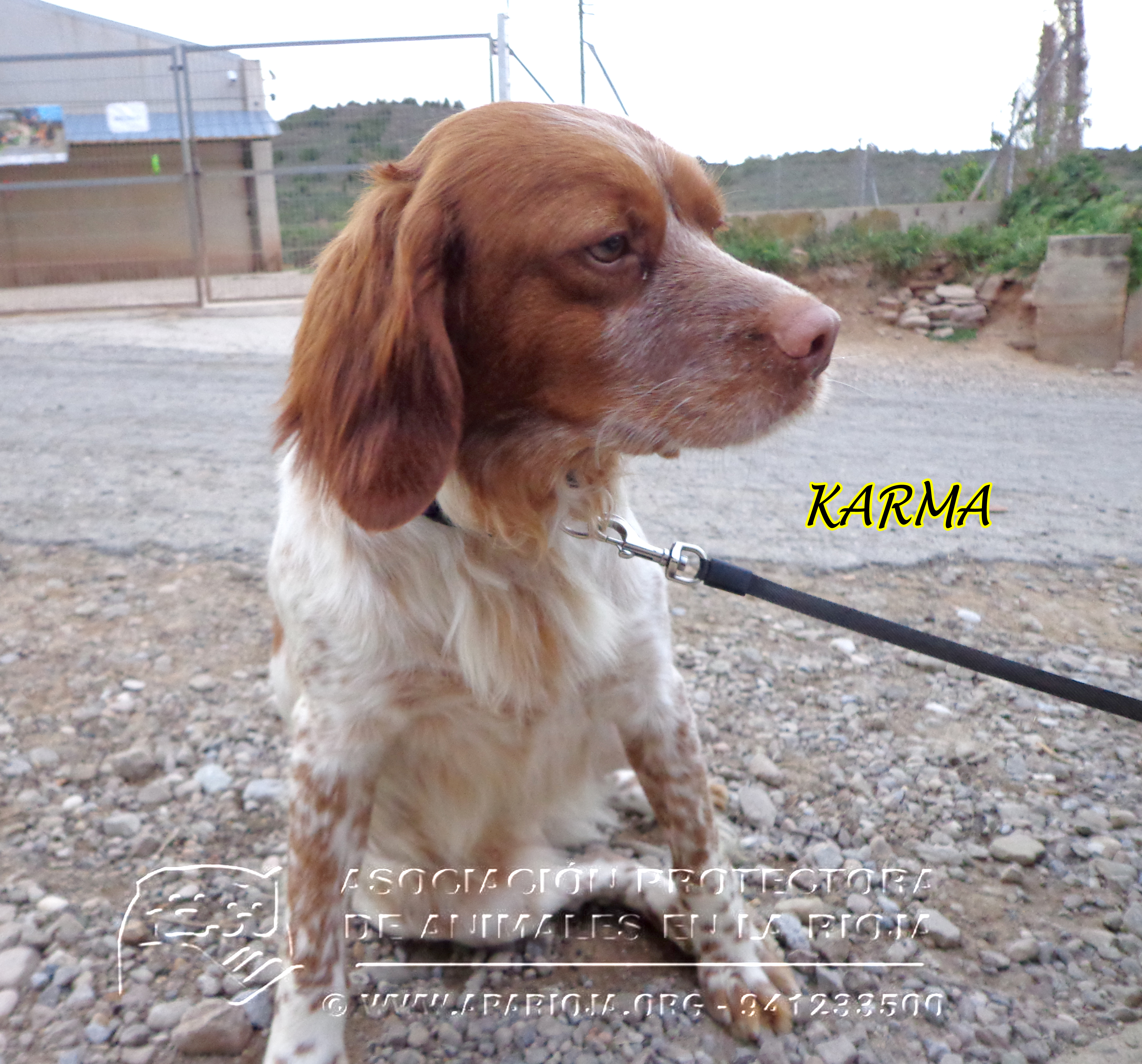 Karma es una Spaniel Bretón que apareció abandonada por Mendavia.