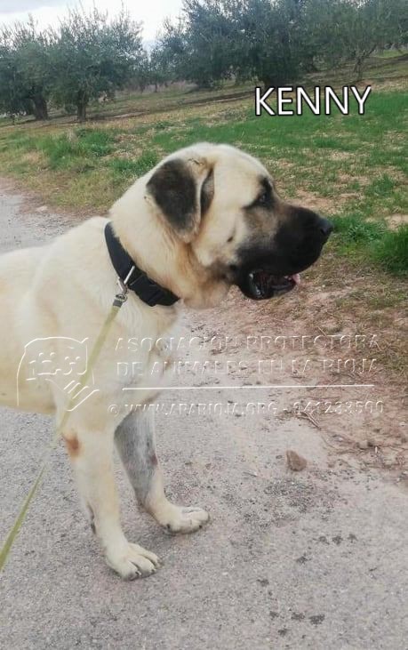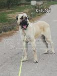 Kenny es un mastín de tamaño grande, nacido aproximadamente en julio de 2017.