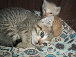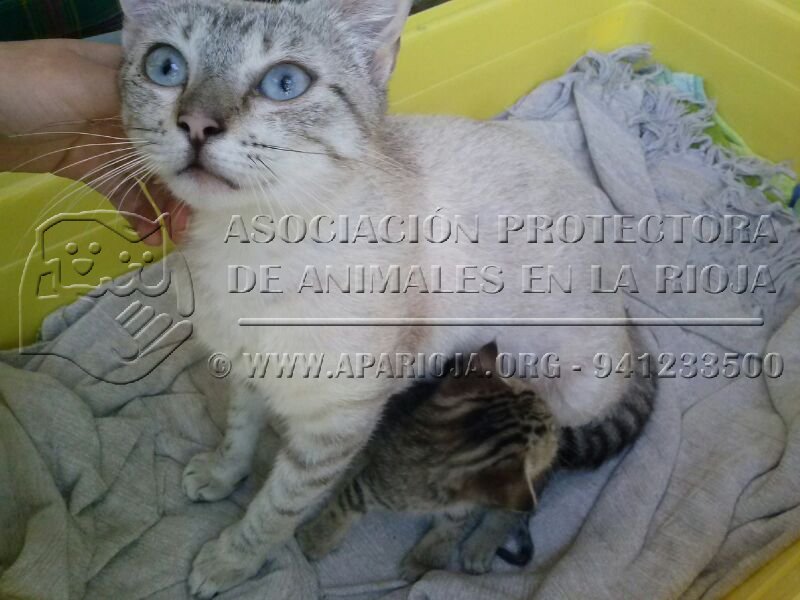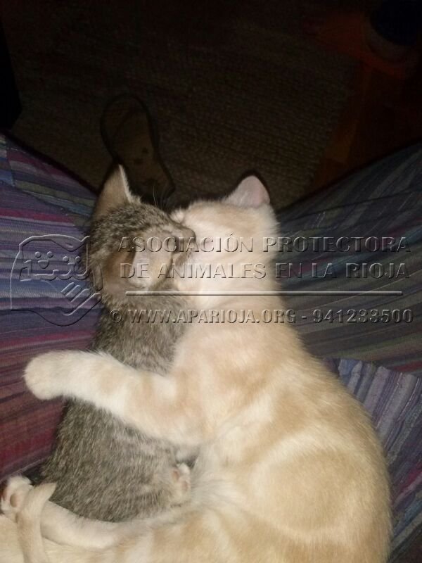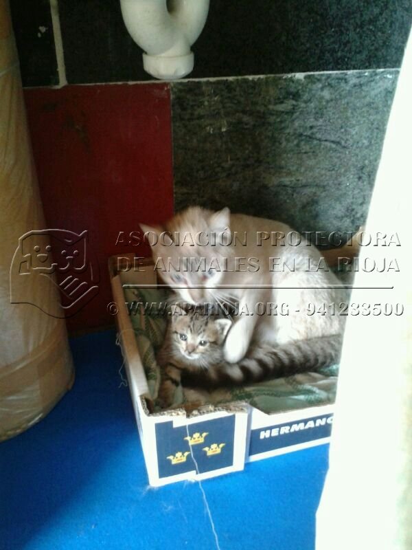 • Observaciones : Hemos recogido un bebé rubito, de menos de un mes, que estaba abandonado en un contenedor. Probamos a ver si KIRA le daba de mamar y... parece que lo ha adoptado como suyo!!! Esperamos que ahora crezca fuerte y puede encontrar un verdadero hogar, igual que KIRA y BUFI. Mamá joven, de 1 año, súper cariñosa y sociable. Vivía en la calle. Tuvo una camada de varios gatos, y se murieron todos menos BUFI. Vivía en un entorno donde ser tan cariñosa iba a mermar sus posibilidades de sobrevivir (ya han sufrido envenenamientos, cachorros tirados al río vivos...). Su bebé BUFI tiene un mes y poco, y aún mama. --------- AGOSTO 2013- BUFI Y RUBITO (KOVU) ADOPTADOS, KIRA SIGUE ESPERANDO UN HOGAR.