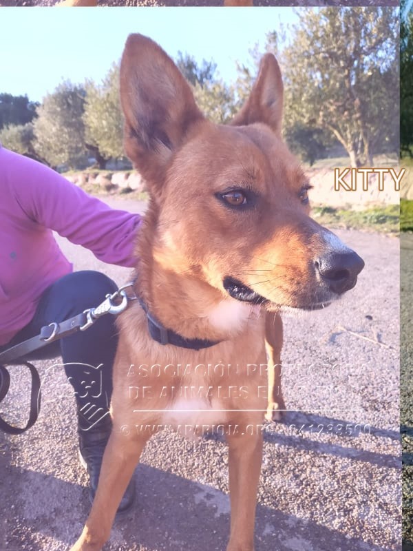 Kitty fue rescatada de la perrera el 30 de enero de 2020, junto a dos perritas más, Milka y Katty y dos cachorritos, Elvis y Yuppi.