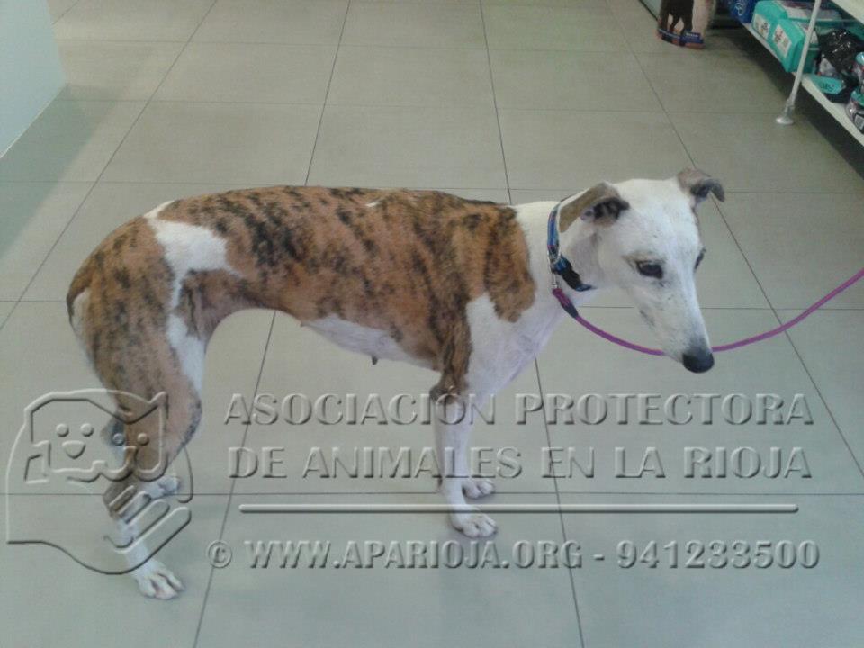 - Observaciones : Ha sido usada en carreras de galgos, y cuando ya no sirvió como sus dueños querían, fue abandonada y pasó de mano en mano hasta caer en un sitio lleno de porquería y mugre. Nos ha costado 2 camadas y unos 15 cachorros rescatarla. No la querían, pero no querían darla. Es la mamá de GUERRERO, ABRIL, GAEL, MAURA, BANDERAS, BARDEM (en adopción), y también de JACKY, MADONNA, DAFI e IRIS (ya adoptados estos últimos). En la primera camada, que conseguimos rescatar, murieron varios cachorros de parvo. De la segunda, 2 murieron y el resto pasó momentos duros, ya que estaban llenos de parásitos y muy malnutridos cuando los cogimos. LOLES ya no traerá más cachorros al mundo, ya nadie podrá abandonarla por no "servir", nadie podrá usarla como si fuera mercancía sin valor. Si sus cachorros pudieran hablar, dirían que su madre es una luchadora, y que va a ser muy feliz lejos de donde estaba.