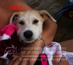 Lucky era una cachorra que vivía en una tubería de riego en el Barrio de La Estrella. La rescatamos con 4 meses el 4 de julio de 2011.