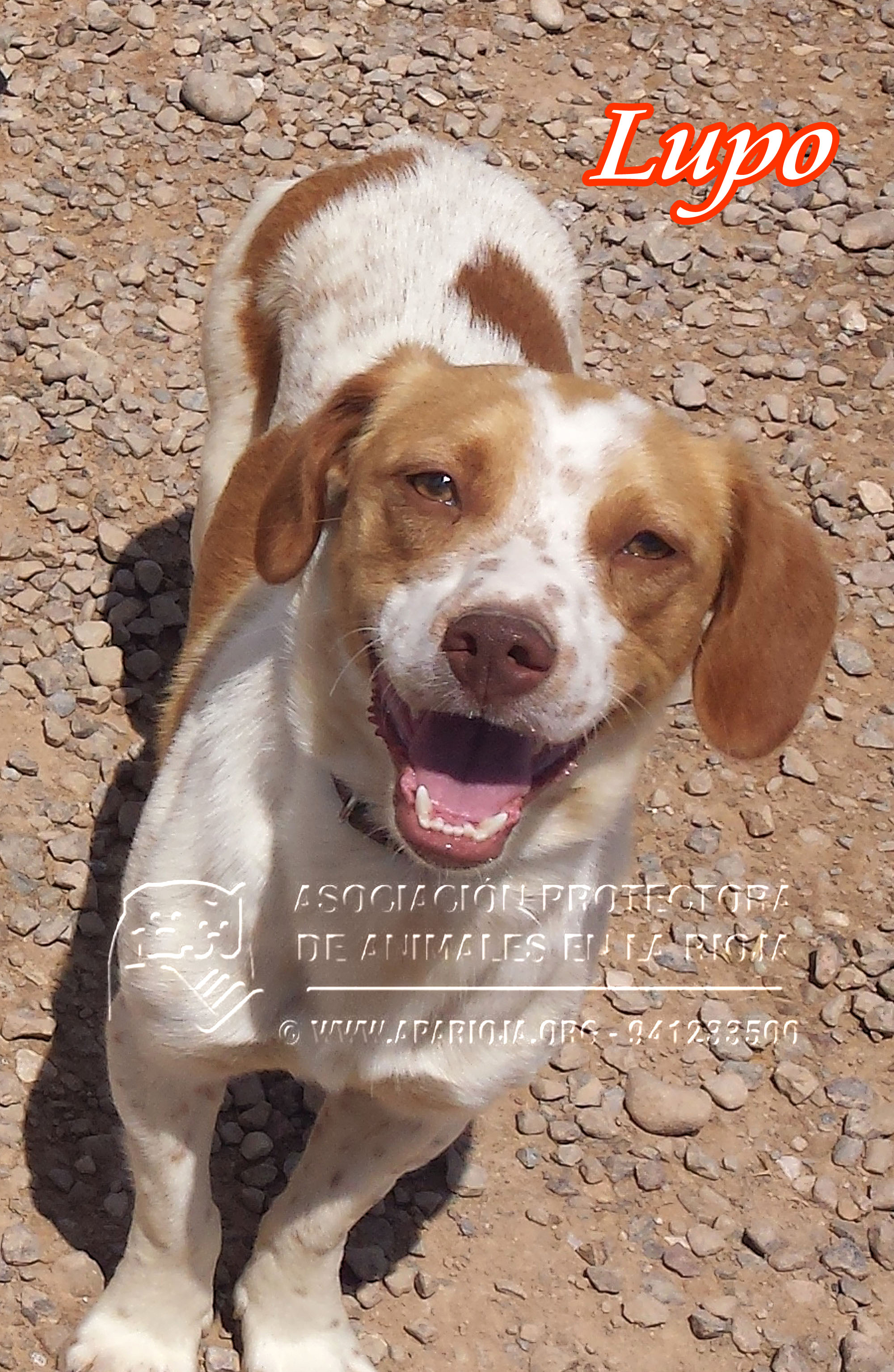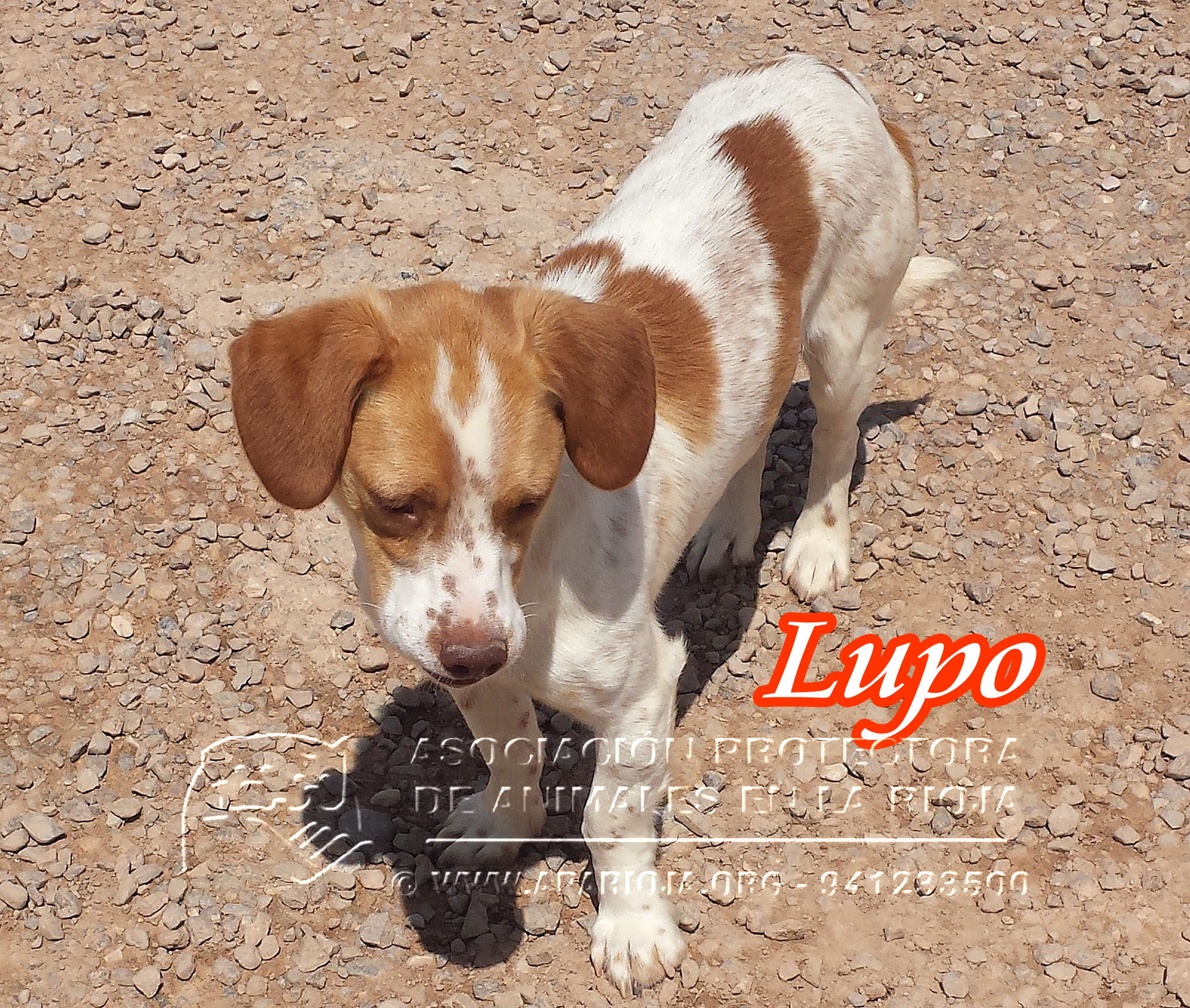 Este es Lupo. Un perrito muy bueno, de tamaño pequeño, al que le cambió la suerte en abril de 2015, el día que lo encontraron vagando por un pueblo de La Rioja. No sabemos cuanto tiempo llevaría abandonado, pero desde el primer momento se mostró agradecido y cariñoso con las chicas de www.laburralola.es , que lo tuvieron en acogida hasta que lo pudimos llevar a nuestro refugio.