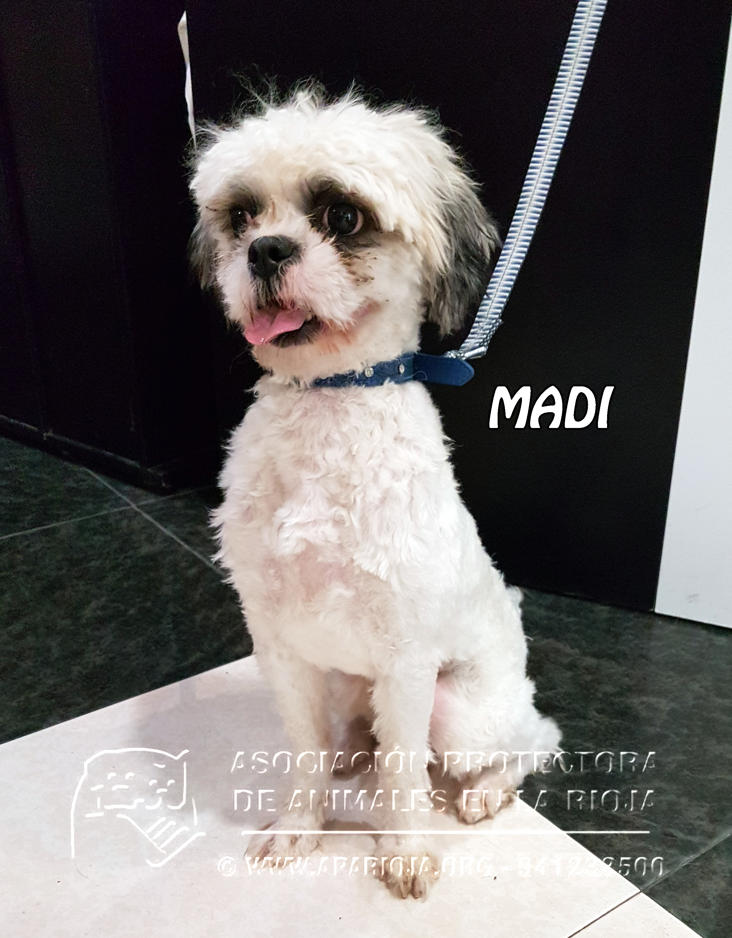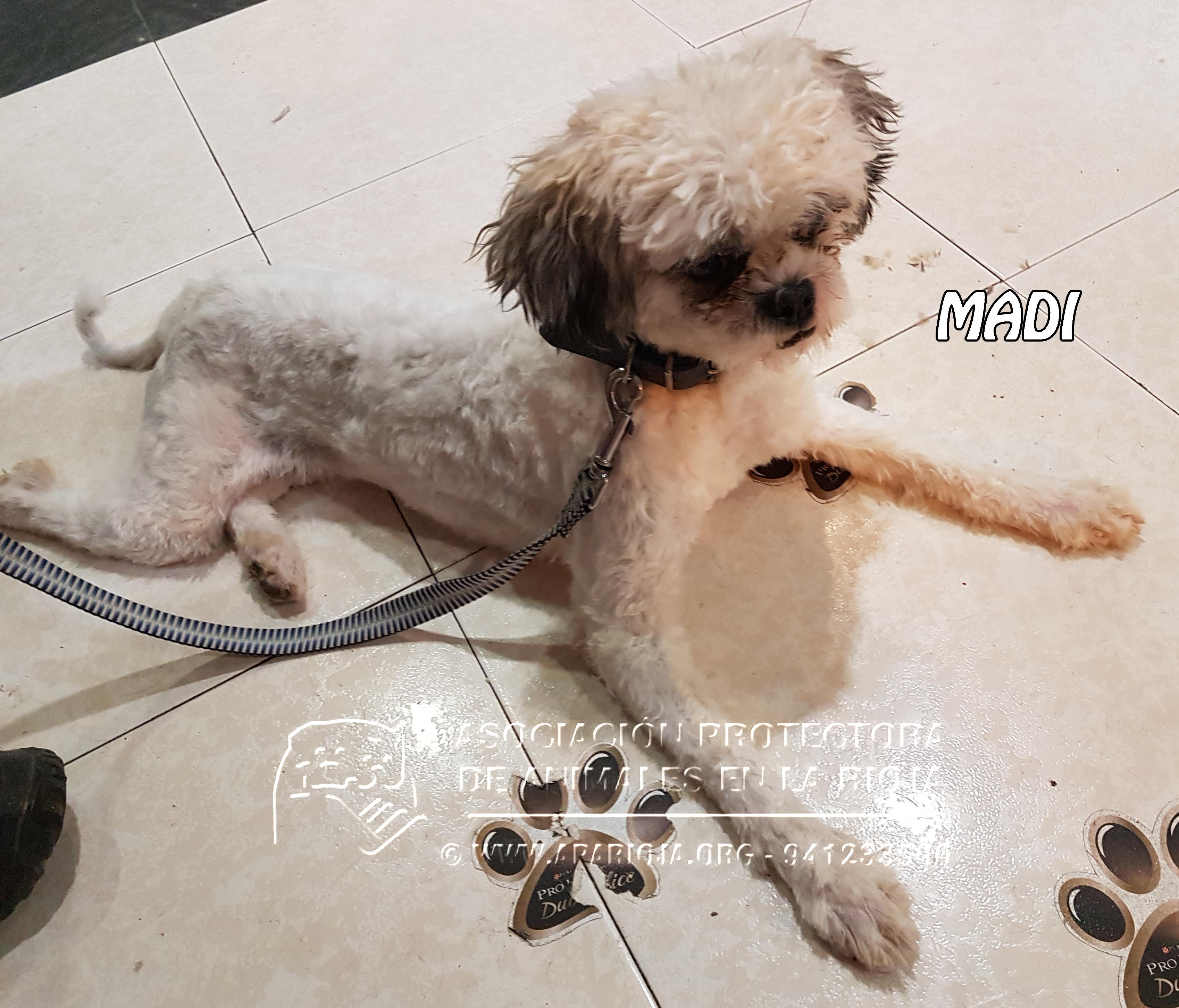 A Madi la dejaron atada en una tienda el 28 de septiembre de 2017. La chica de la tienda no podía hacerse cargo de ella y la iba a llevar a la perrera. Nos enteramos del caso y fuimos a por ella. Como nos temíamos no tenía microchip.