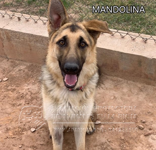 Hembra mestiza de Pastor Alemán, muy alegre, sociable y cariñosa, tanto con personas como con otros perros.