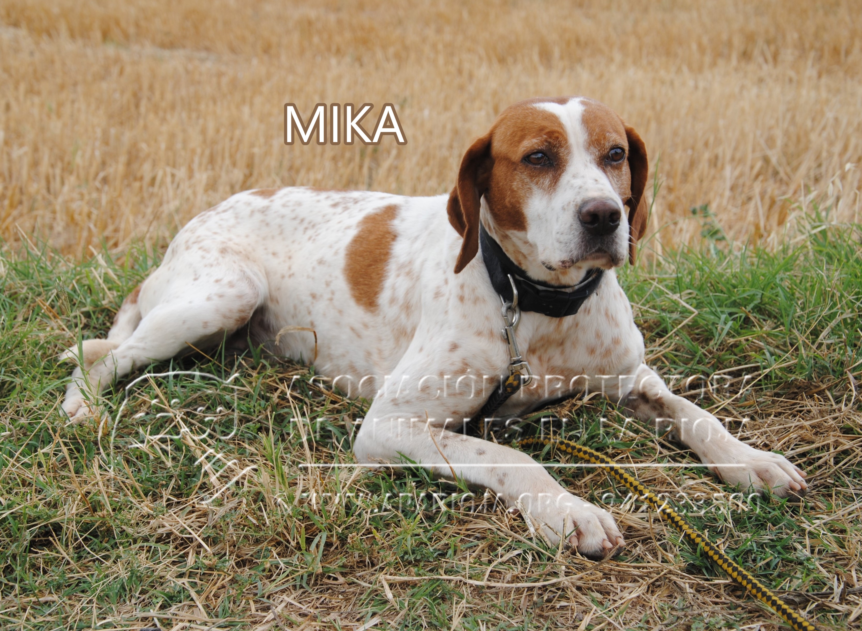 Es una mestiza de pointer de tamaño mediano, muy, muy cariñosa.