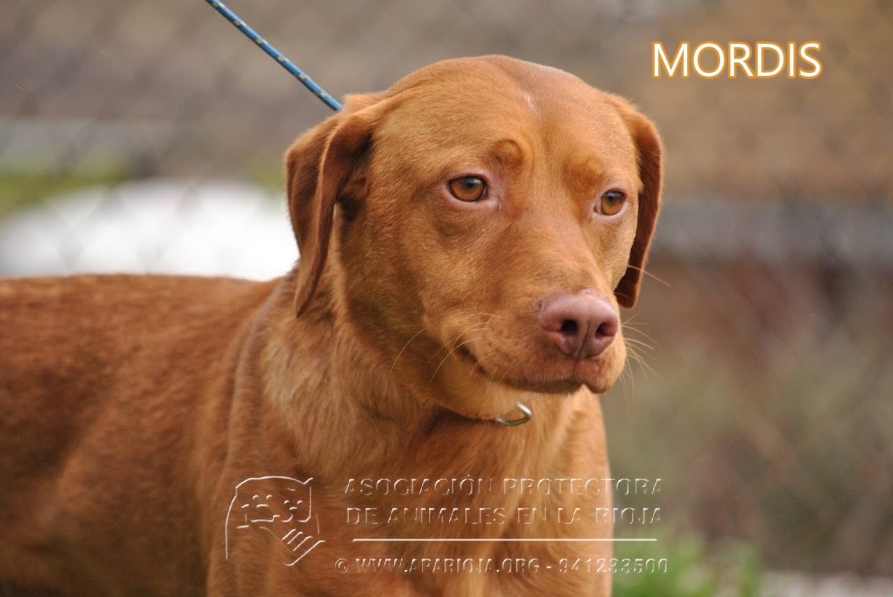 Rescatado el 24 de octubre de 2014 de la perrera municipal de Logroño junto a SHELDON, donde estaba en la lista de sacrificios próximos.