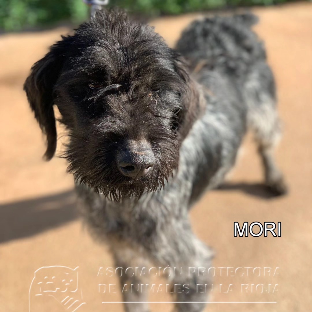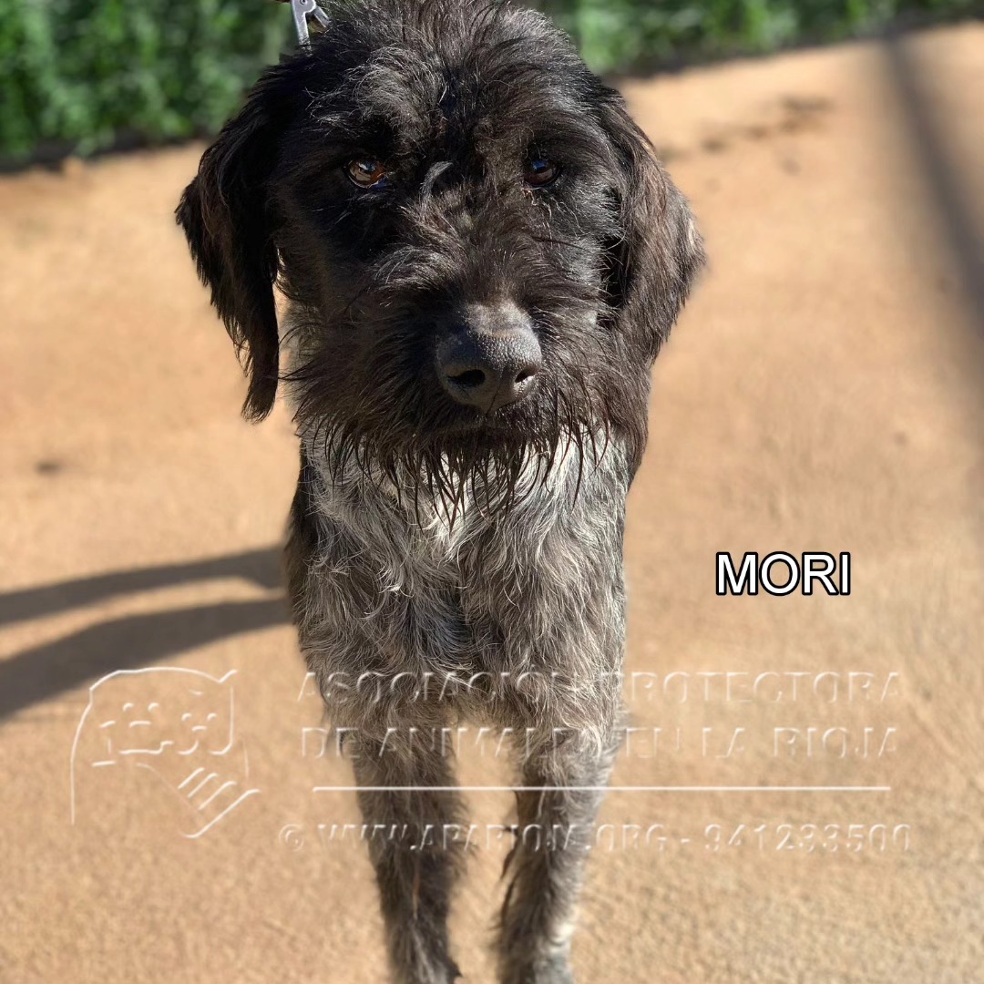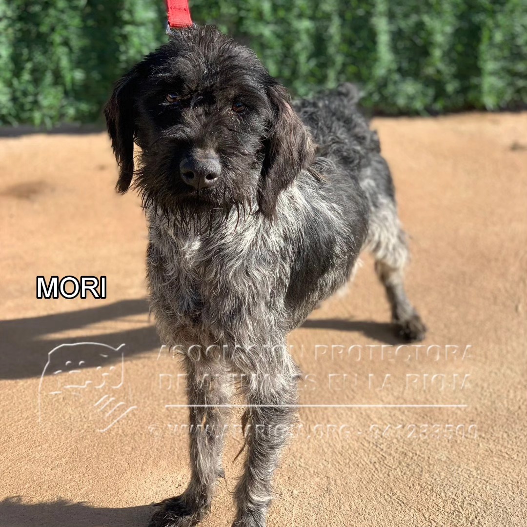 Mori es una bonita Drahthaar, de tamaño mediano, muy sociable, cariñosa, alegre y activa.