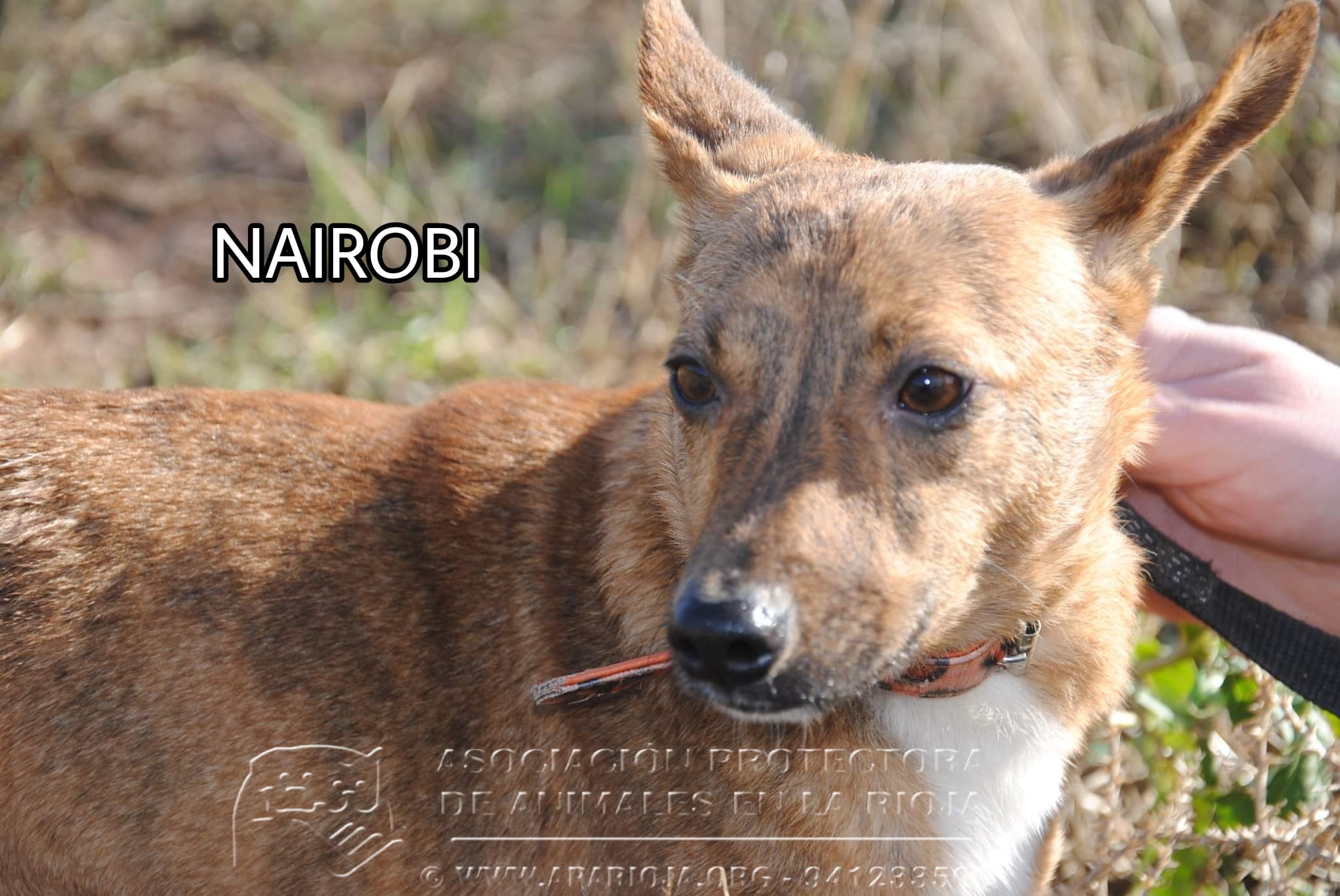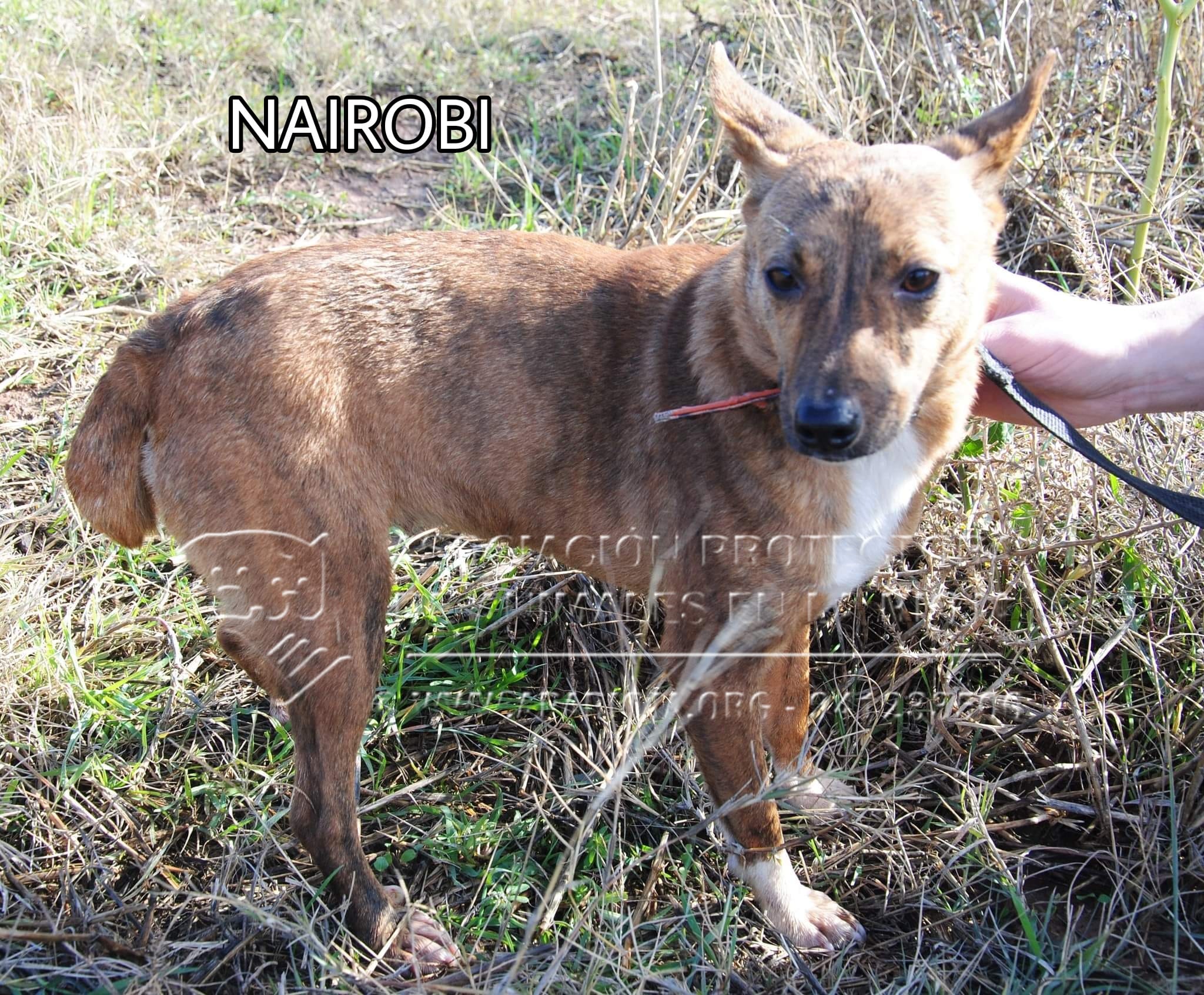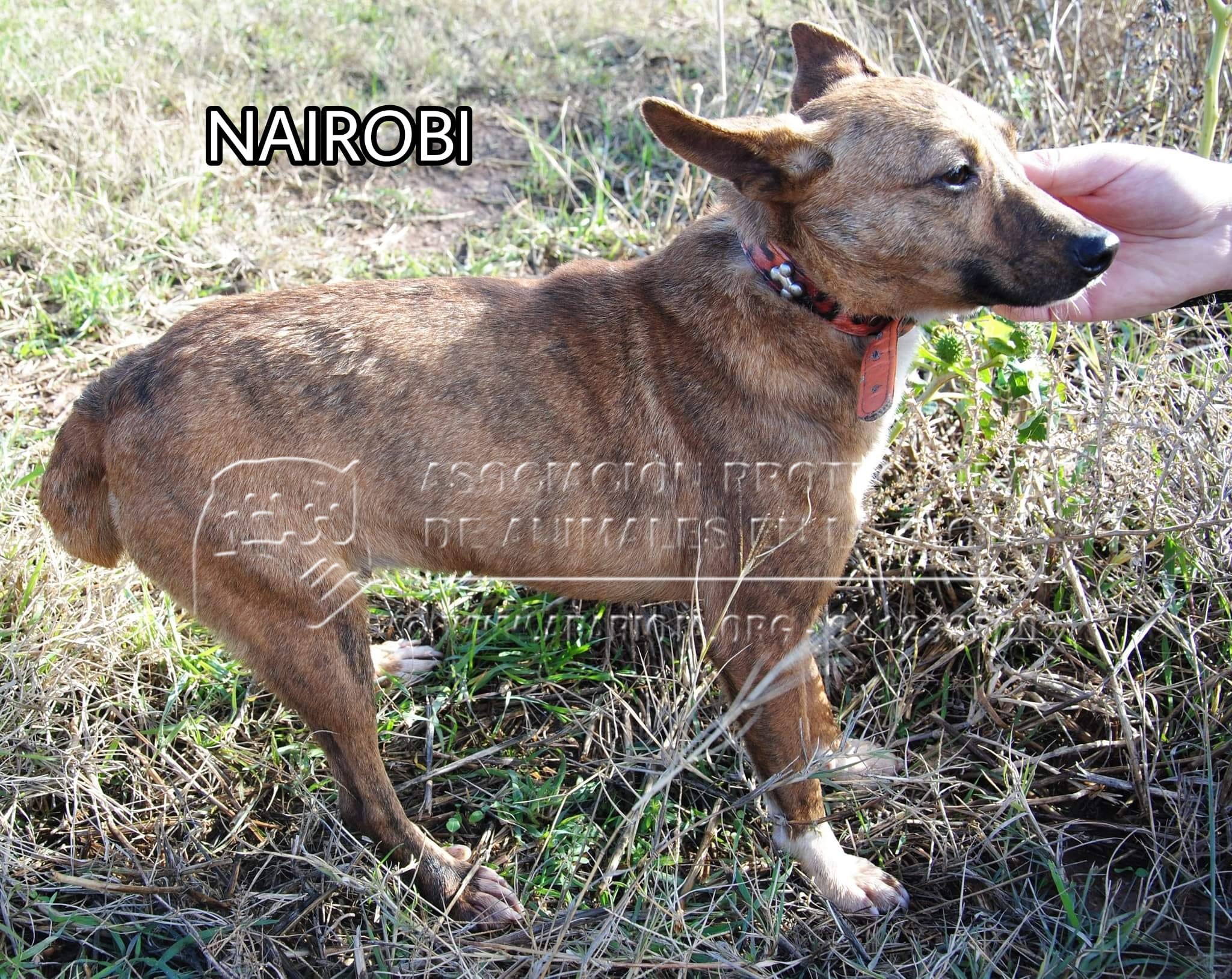 Nairobi es una perrita de tamaño pequeño que se muestra miedosa con personas.