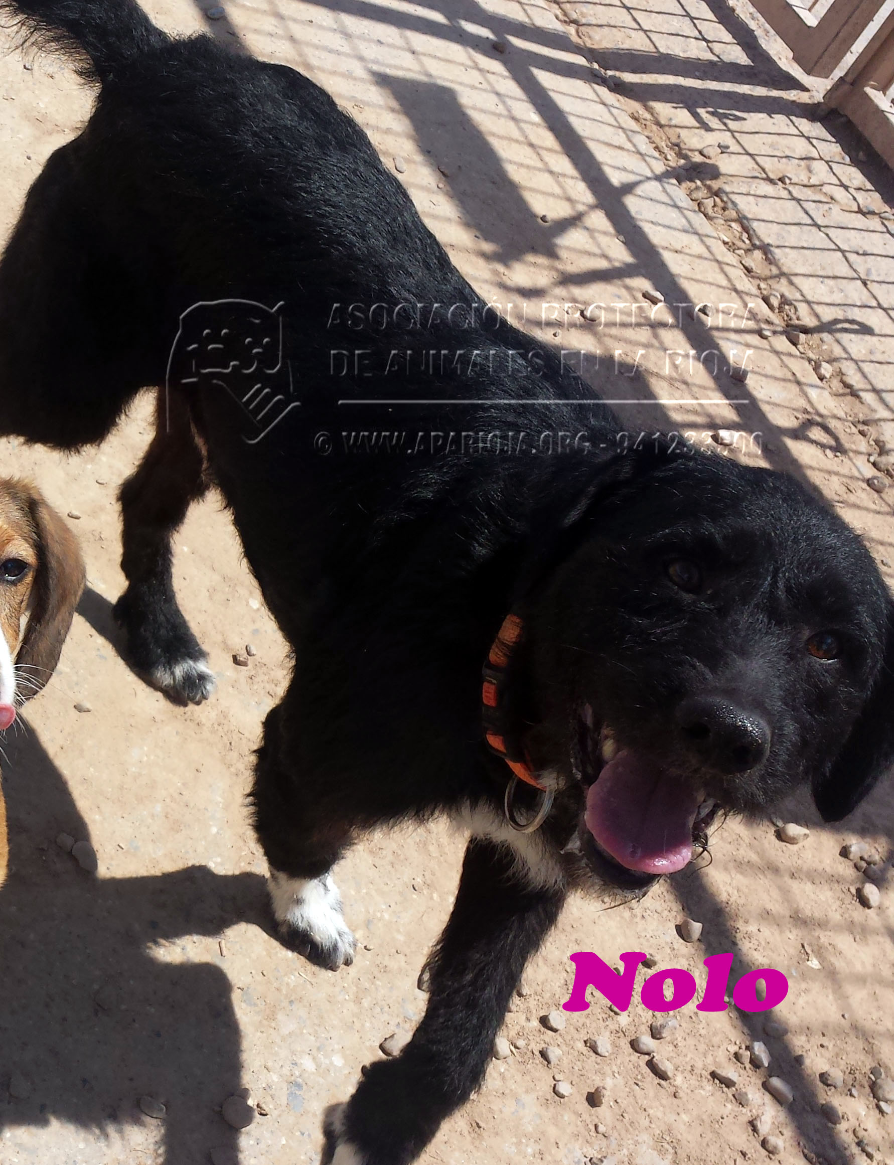 Es un mestizo de tamaño pequeño. Nacido en 2009 con muchas ganas de ser feliz y compartir la alegría que transmite. Cuando te mira parece que sonriera. Solo quiere cariño, caricias y jugar y correr.
