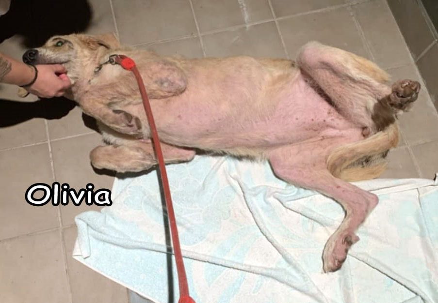 La dejaron allí tirada ante los ojos asombrados y llorosos de la niña, llena de pulgas y garrapatas y comida por su enfermedad, la sarna demodécica, que le había producido graves heridas por todo el cuerpo.