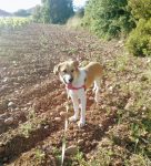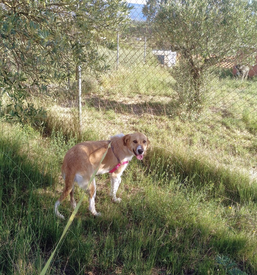 Es una preciosa perra de tamaño no demasiado grande para ser una mestiza de mastin. Nacida aproximadamente en octubre de 2018.