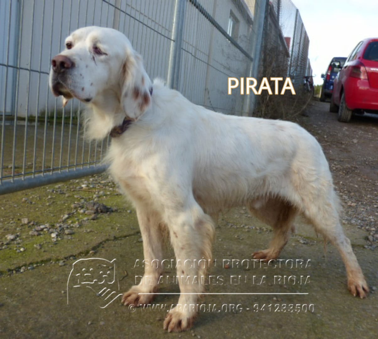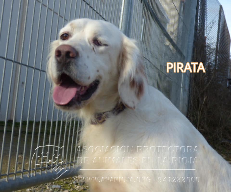 Este precioso Setter llegó a nosotros sin uno de sus ojitos, de ahí que le hayamos puesto de nombre Pirata.