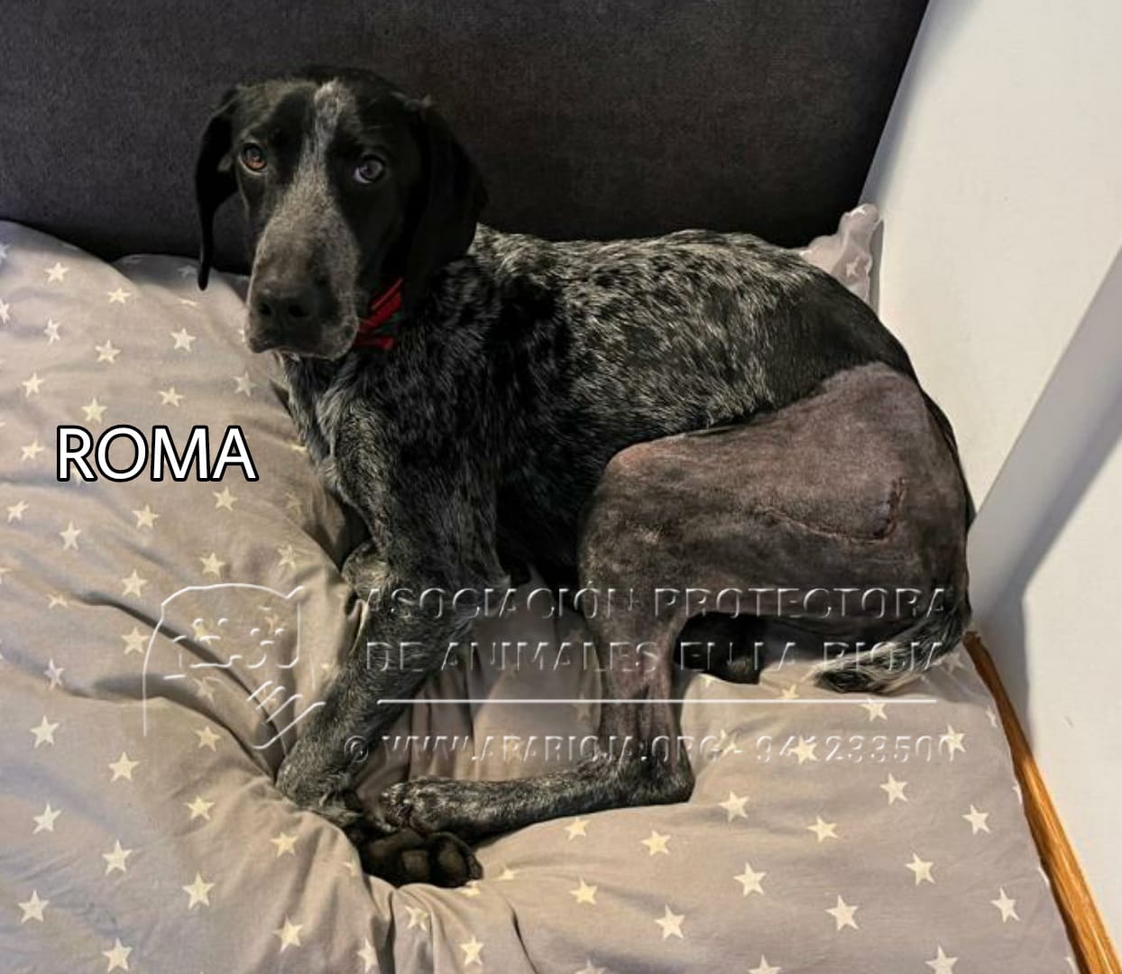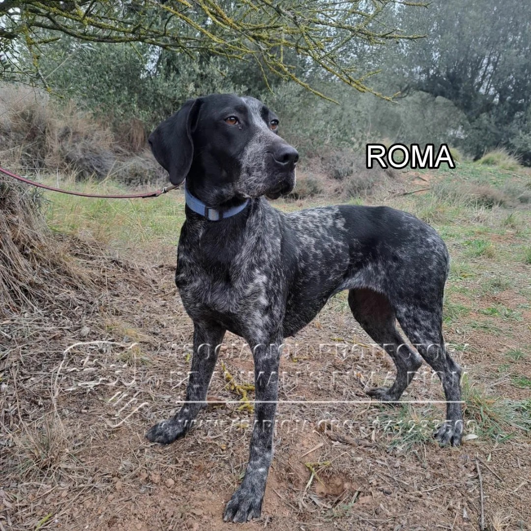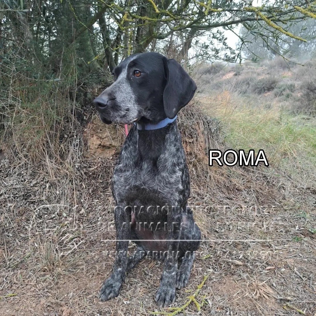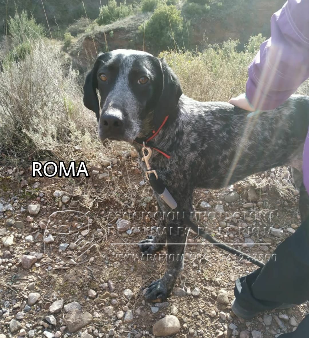 Roma la recogimos después de haber sufrido un atropello. Tuvimos que operarla y buscamos una casa de acogida para que se recuperara. Ahora ya está preparada par encontra una familia definitiva.