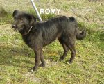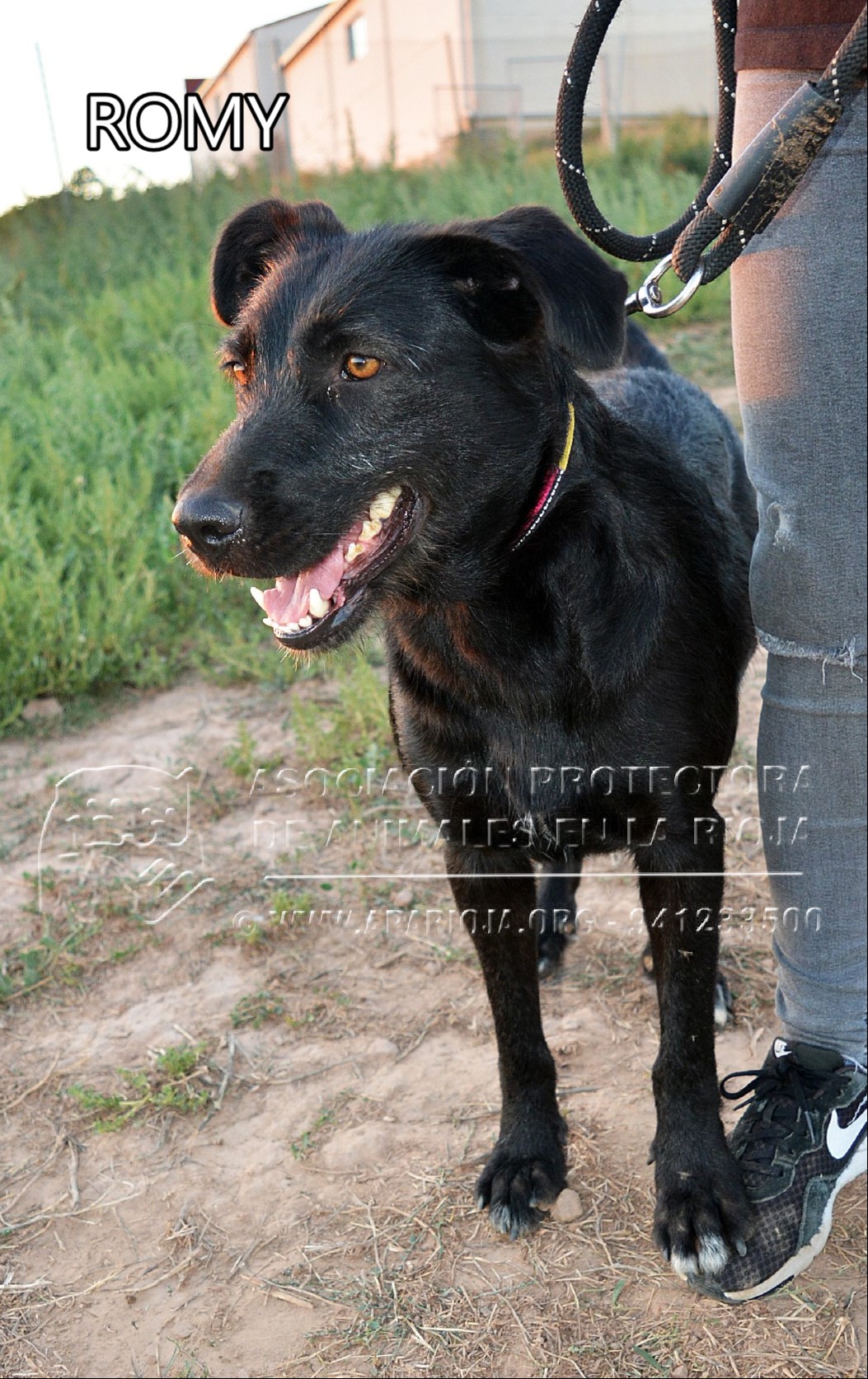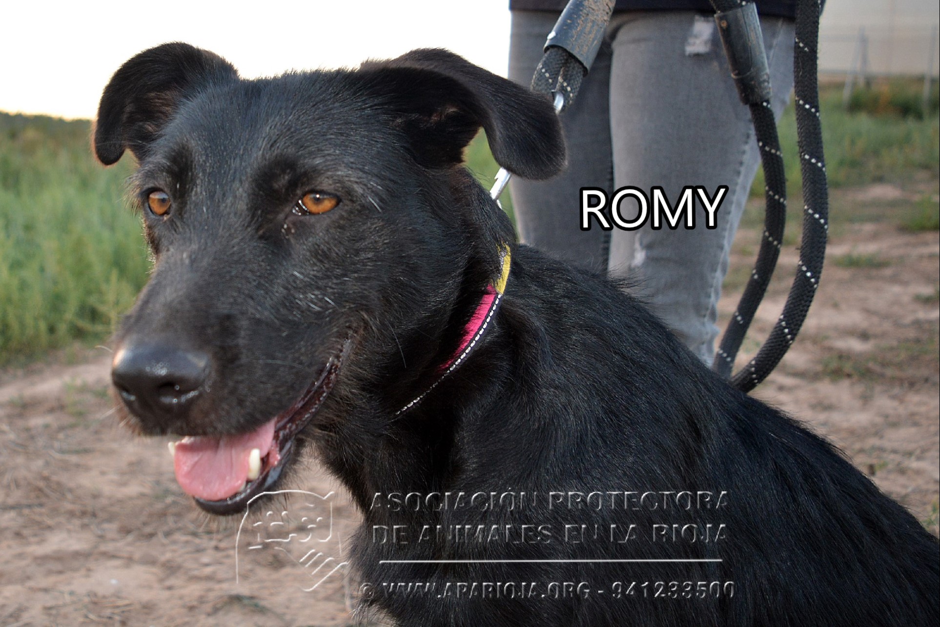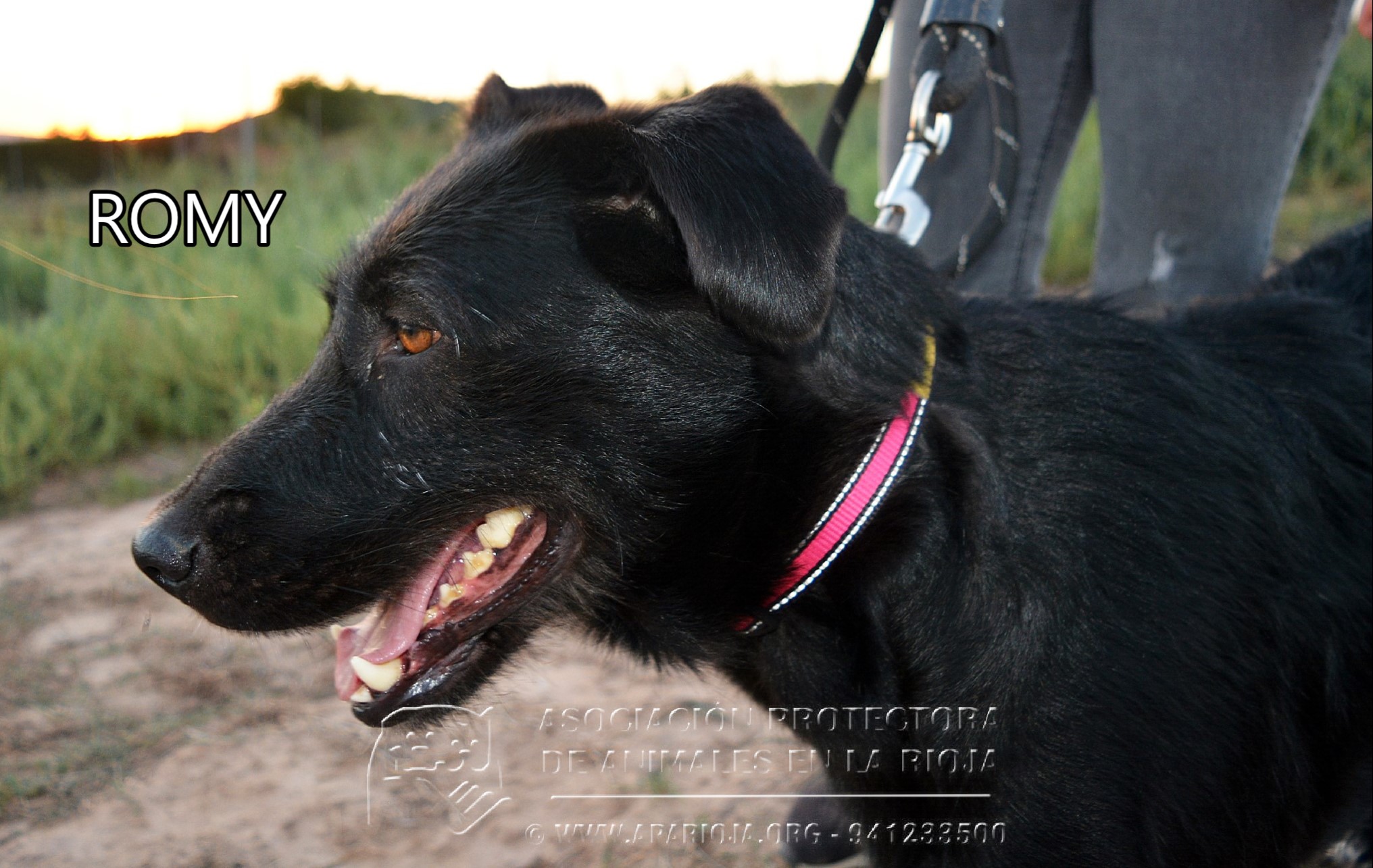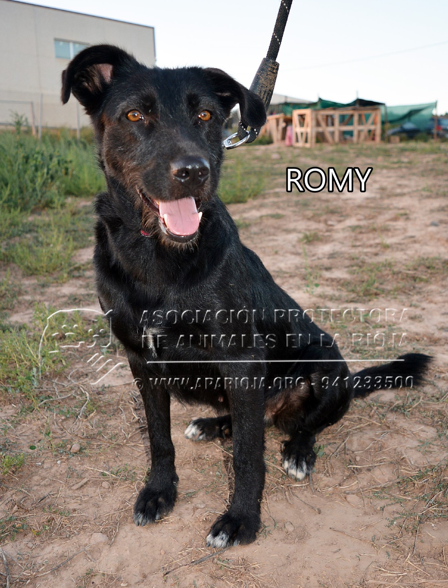 Romy fue rescatada de la perrera el 6 de abril de 2018. Es una perrita nacida aproximadamente en abril del 2013, de tamaño mediano, muy sociable y cariñosa con las personas y con otros perros.