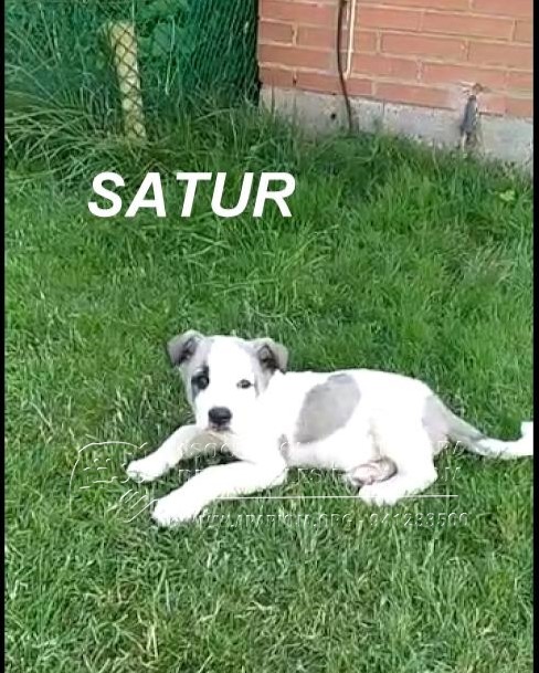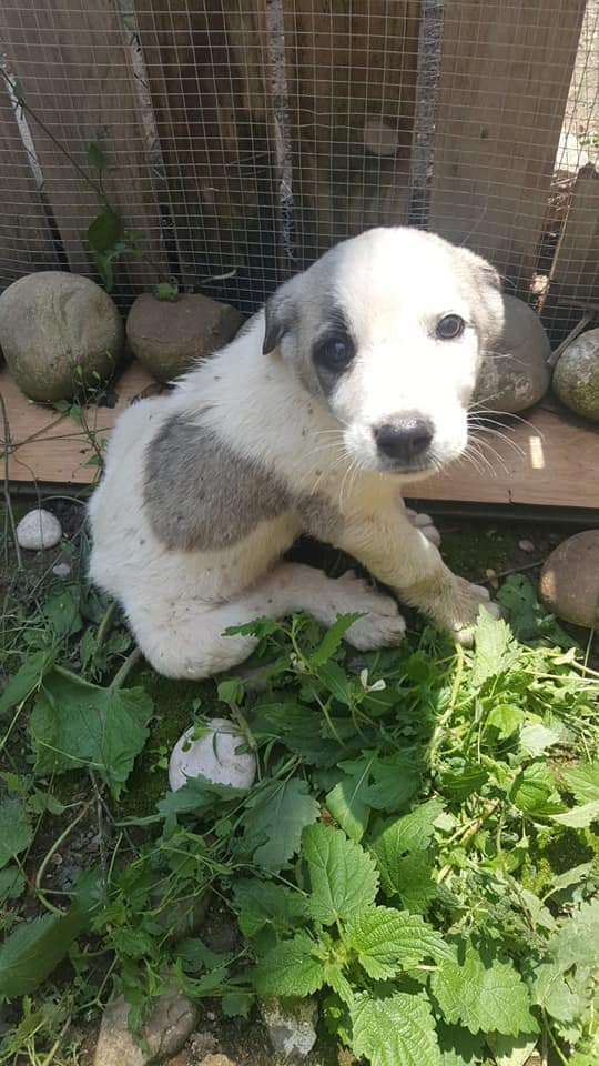 Estaba abandonado en un pueblo, lleno de garrapatas. Es tan sólo un cachorro,  nacido aproximadamente en mayo de 2018. Parece que será de tamaño mediano tirando a grande cuando sea adulto.