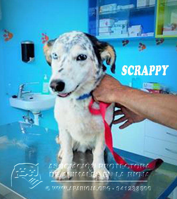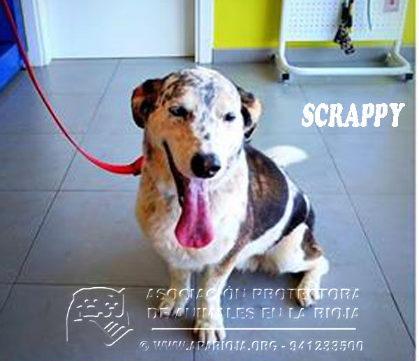 Scrappy nació en febrero de 2011. Es un perro cariñoso, alegre y vital que merece una familia que lo quiera.