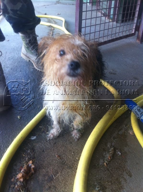 - Observaciones : Abandonada hecha polvo, manchada, mojada, delgada, llena de nudos... cerca de la base militar de Agoncillo. Debajo de toda esa capa de porquería, apareció una perra guapísima, tímida, muy buena y sociable. Se buscan a sus posibles dueños si es que está perdida, y si no aparecen, busca un nuevo hogar para siempre. APARIOJA 679064646