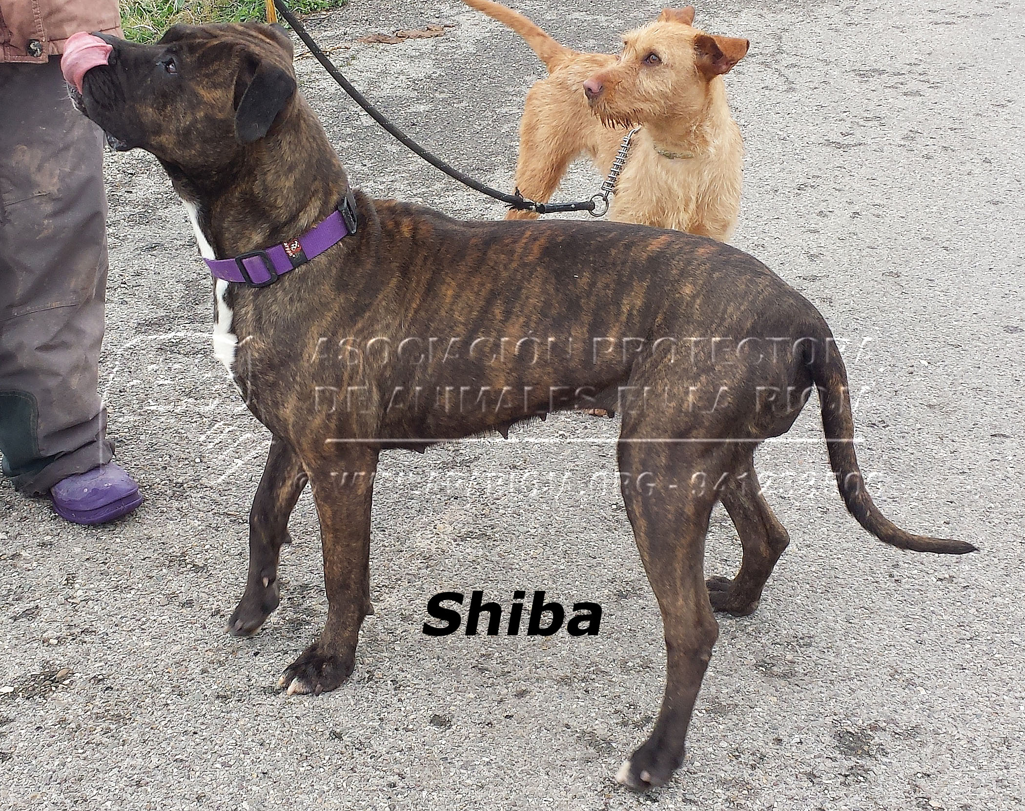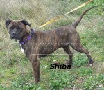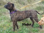 A Shiba la encontramos bajo una alcantarilla en Lardero con tres cachorritos ( Coke, Portos y Gabi) aterida de frío. Después de ser rescatada ha estado en una casa de acogida donde se ha relacionado perfectamente con otros animales de ese hogar, así como con las personas que se apiadaron de ella.