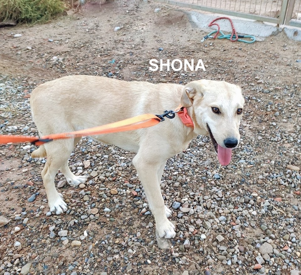 Está aprendiendo a caminar con correa, es un poco tímida. Sociable con otros perros.