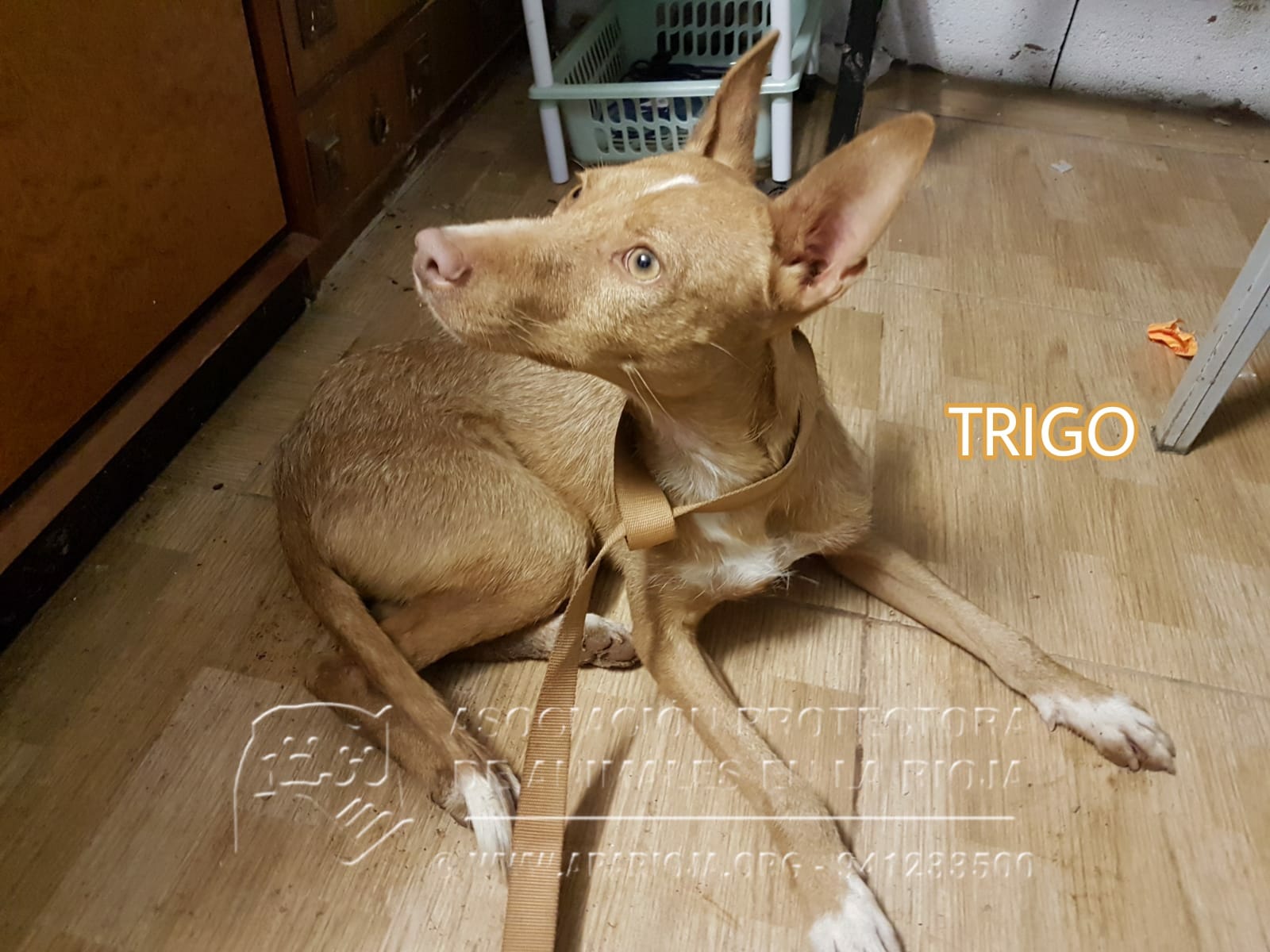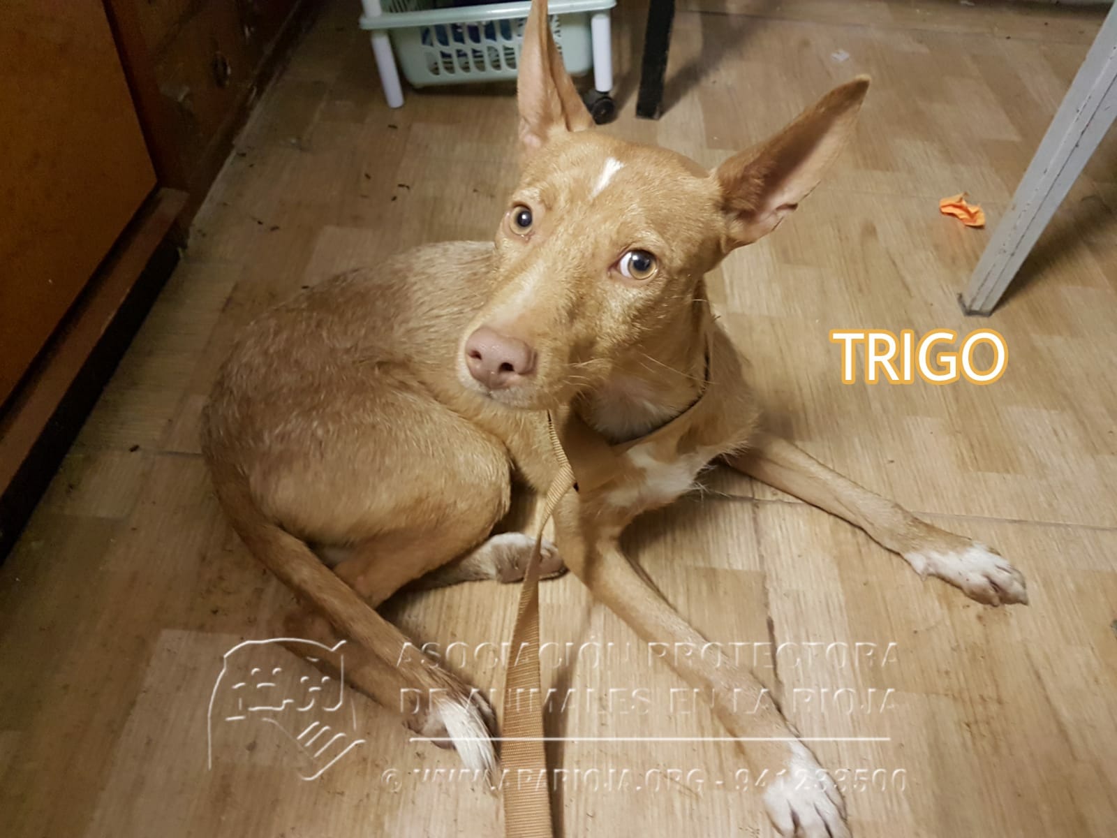 Trigo es un podenquito bueno pero muy miedoso con personas, por lo que necesita padrinos o adoptantes con experiencia en este tipo de perros. Poco a poco, con paciencia y cariño, esperamos que vuelva a confiar.