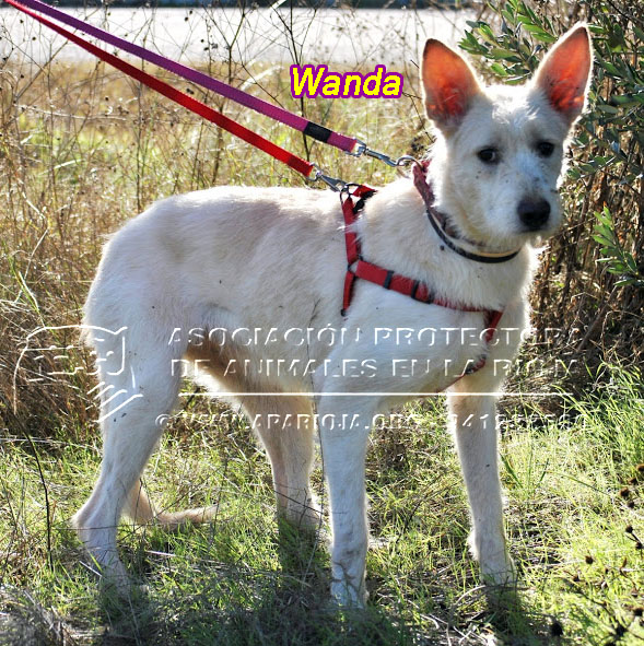 Es una podenca blanca rescatada de la perrera el 29 de junio de 2015 junto con Tous