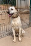 Mestizo de tamaño mediano, cariñoso y activo. Muy sociable tanto con perros como con personas. Pasea bien por ciudad y va bien en coche.