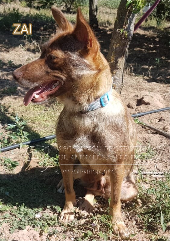 Zai es una perrita joven, de tamaño pequeño tirando a mediano, nacida en enero de 2019.