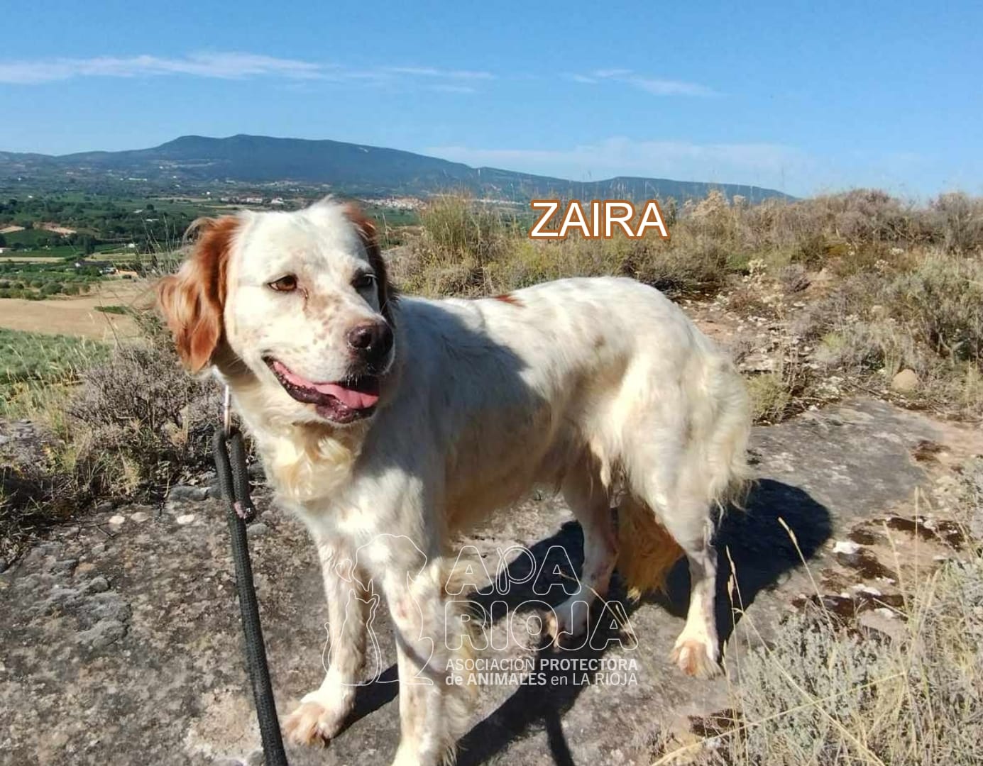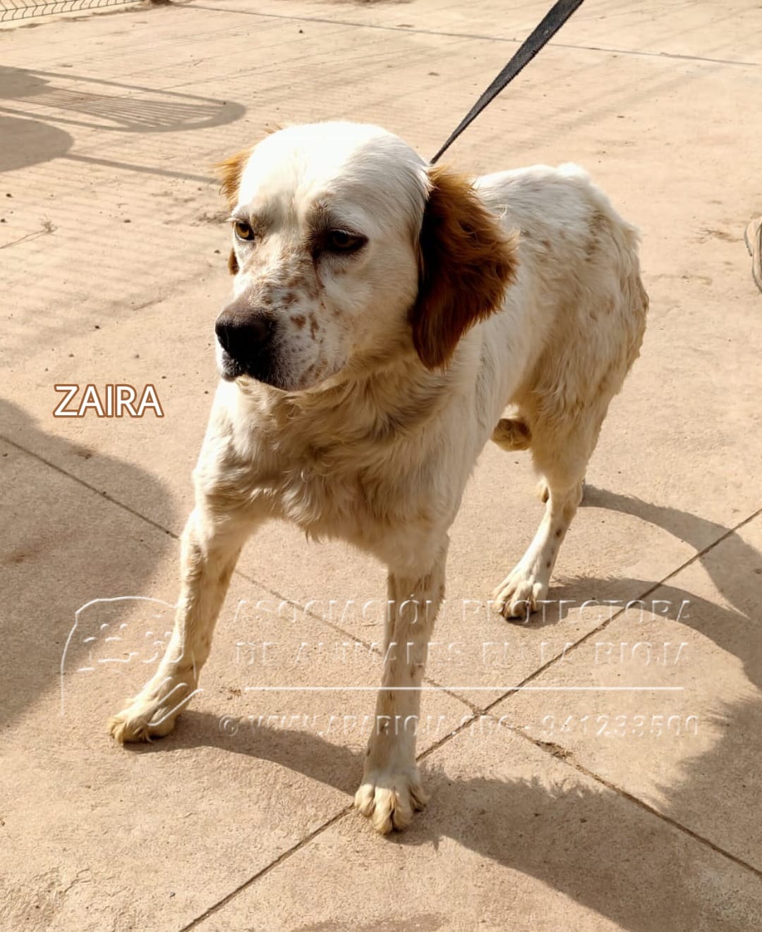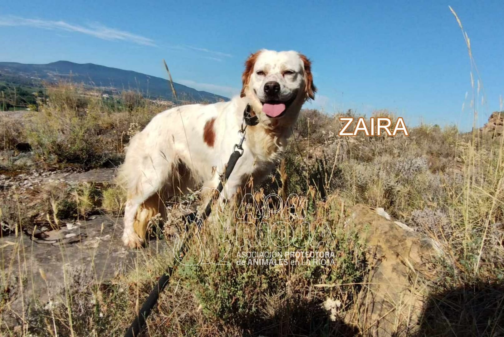 Zaira es sociable y cariñosa con las personas y se lleva bien con otros perros. Al principio le cuesta un poquito salir pero va bien de paseo.