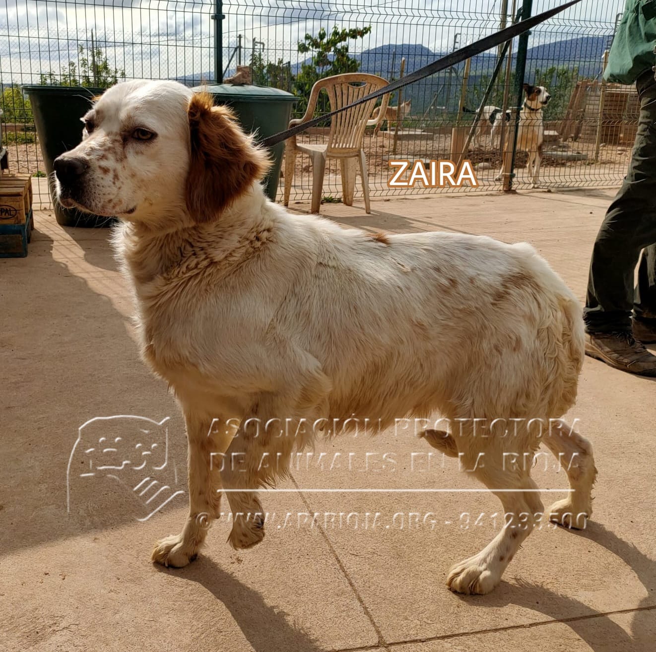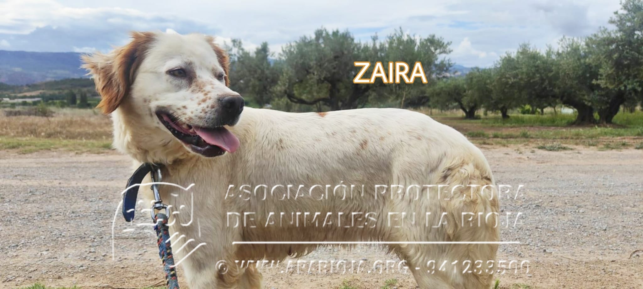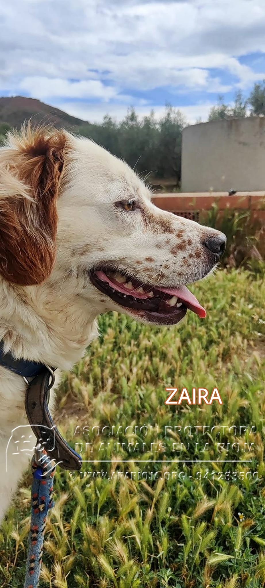 Zaira es sociable y cariñosa con las personas y se lleva bien con otros perros. Al principio le cuesta un poquito salir pero va bien de paseo.